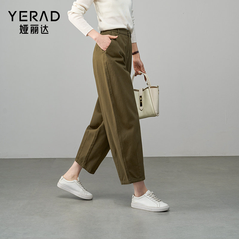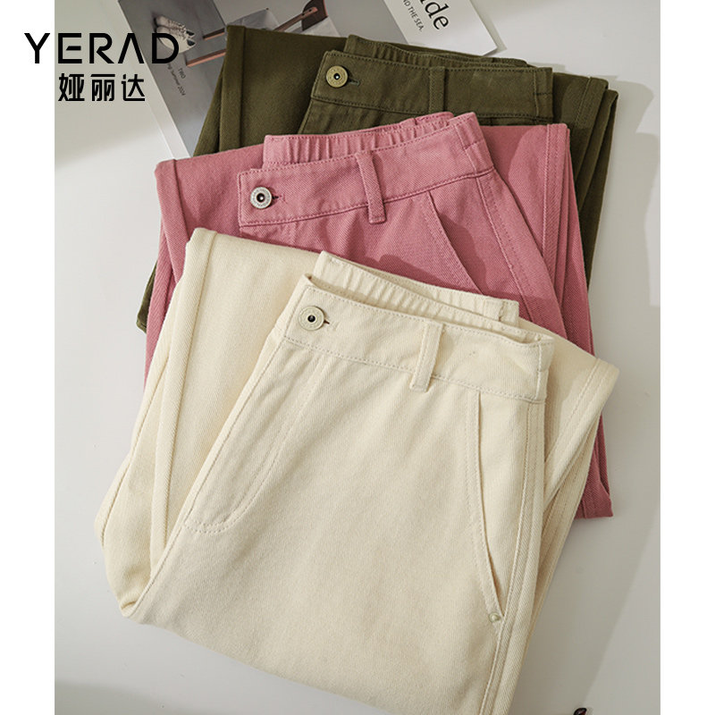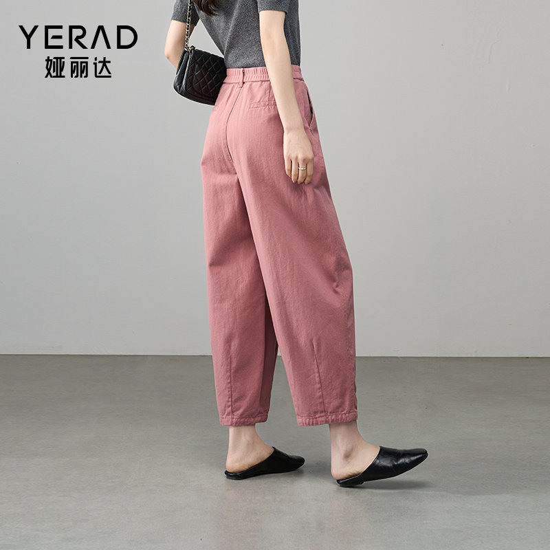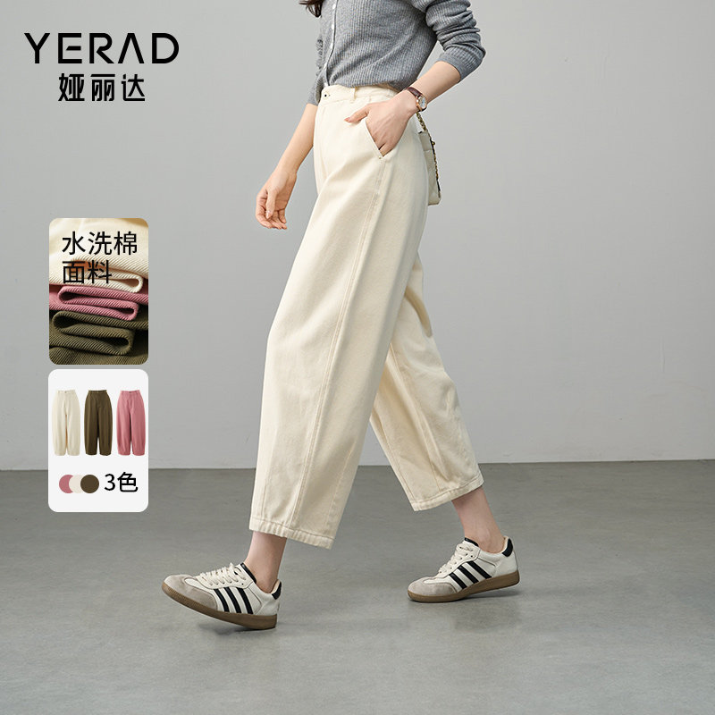 娅丽达彩棉牛仔裤气球裤女春季裤子2025新款女裤粉色老爹裤哈伦裤