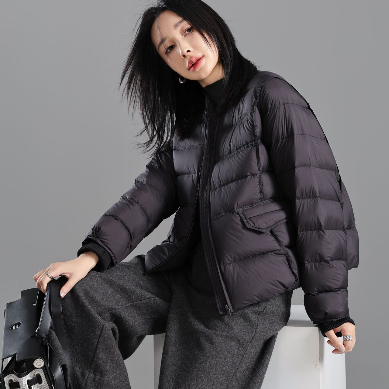 冬装时尚设计感90白鸭绒棒球服羽绒服女韩版简约保暖面包服外套潮