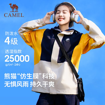 明星同款熊猫骆驼户外单层冲锋衣山系拼色时尚男女款防风防水外套