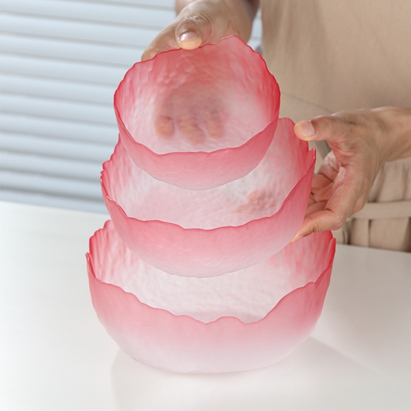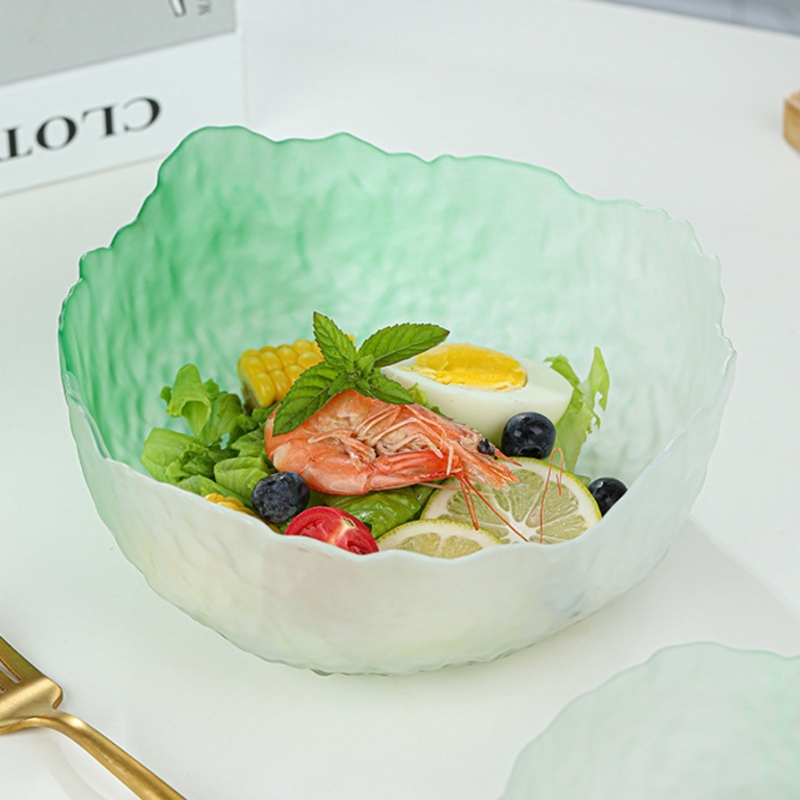 日式锤纹莲雾玻璃碗沙拉碗碟套装家用小清新创意北欧风餐具甜品碗