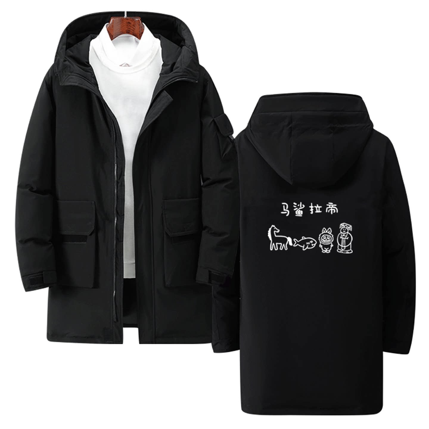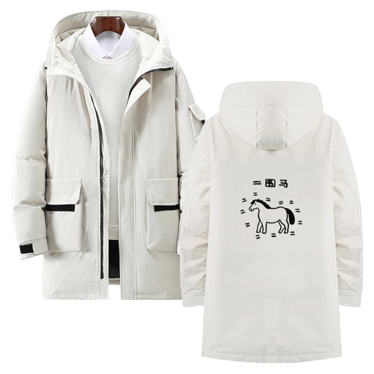 新年马年创意搞笑谐音梗趣味中长款羽绒服可爱图案印花秋冬季男女