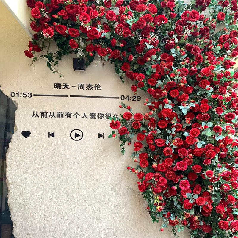花墙瀑布仿真花假花瀑布墙场景网红打卡玫瑰花背景墙商场婚礼布置
