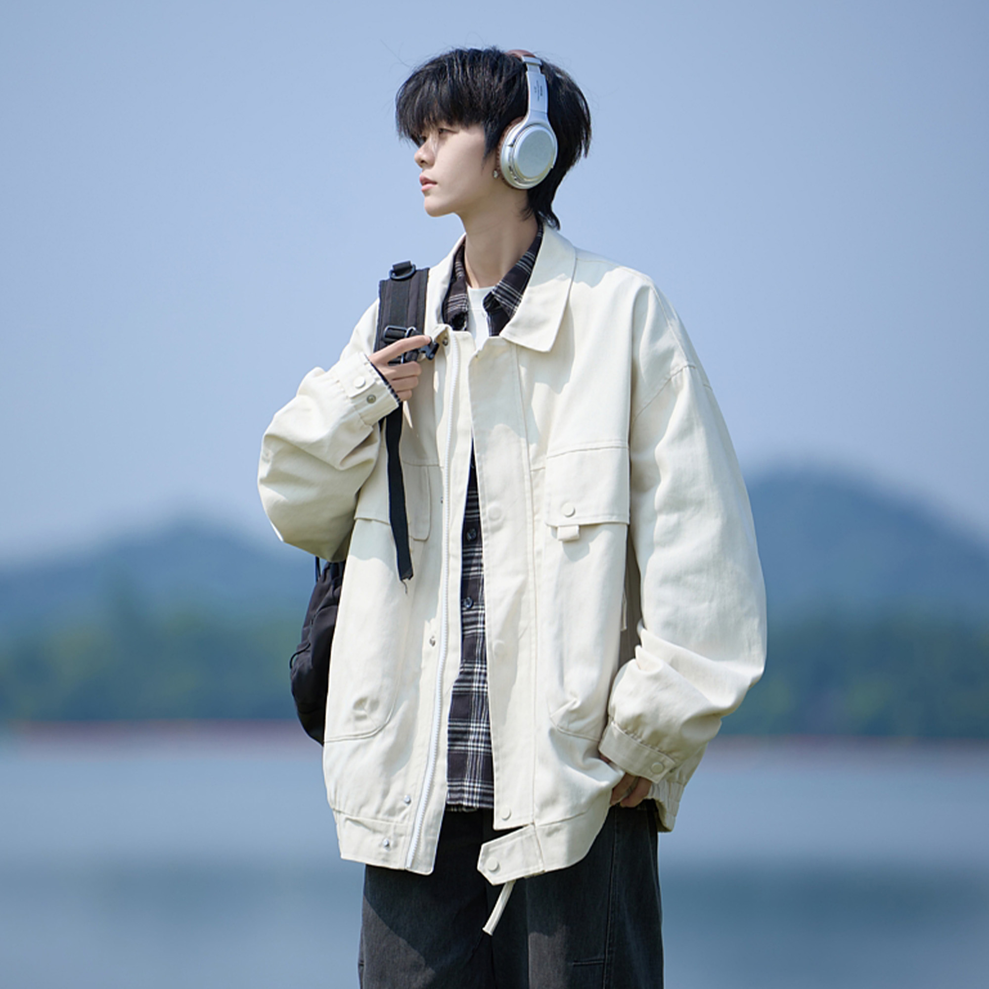 胖胖哥棕色工装大口袋夹克男秋季宽松大码高级感飞行夹克外套潮