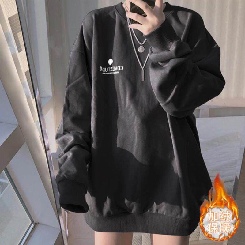 加绒加厚原宿风卫衣女韩版宽松休闲上衣港风打底衫外贸女装潮