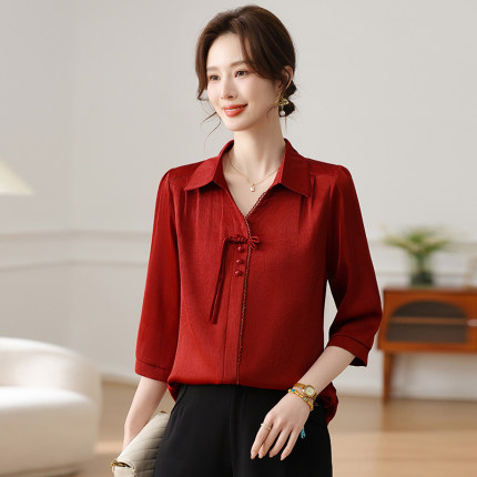 2025新款红色新中式衬衫春夏上衣