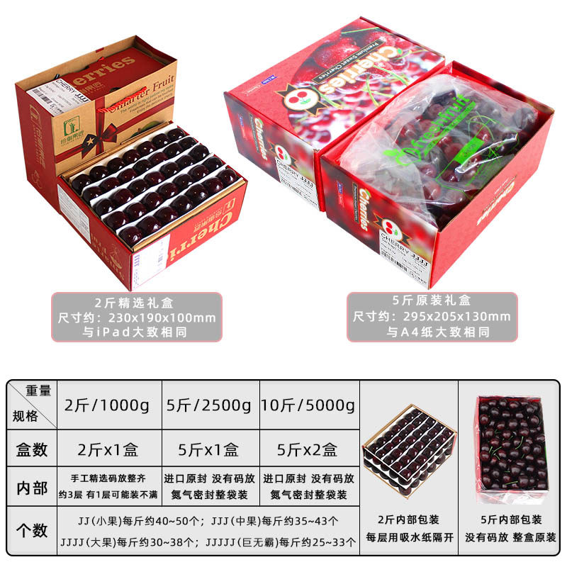 礼盒装2/5斤5J特大果智利进口车厘子4J新鲜水果10斤大樱桃整箱3JJ