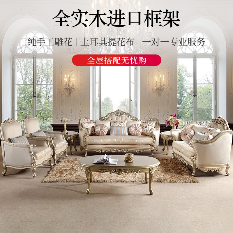 欧式豪华布艺沙发简欧小户型客厅高档会所法式宫廷奢华全实木组合