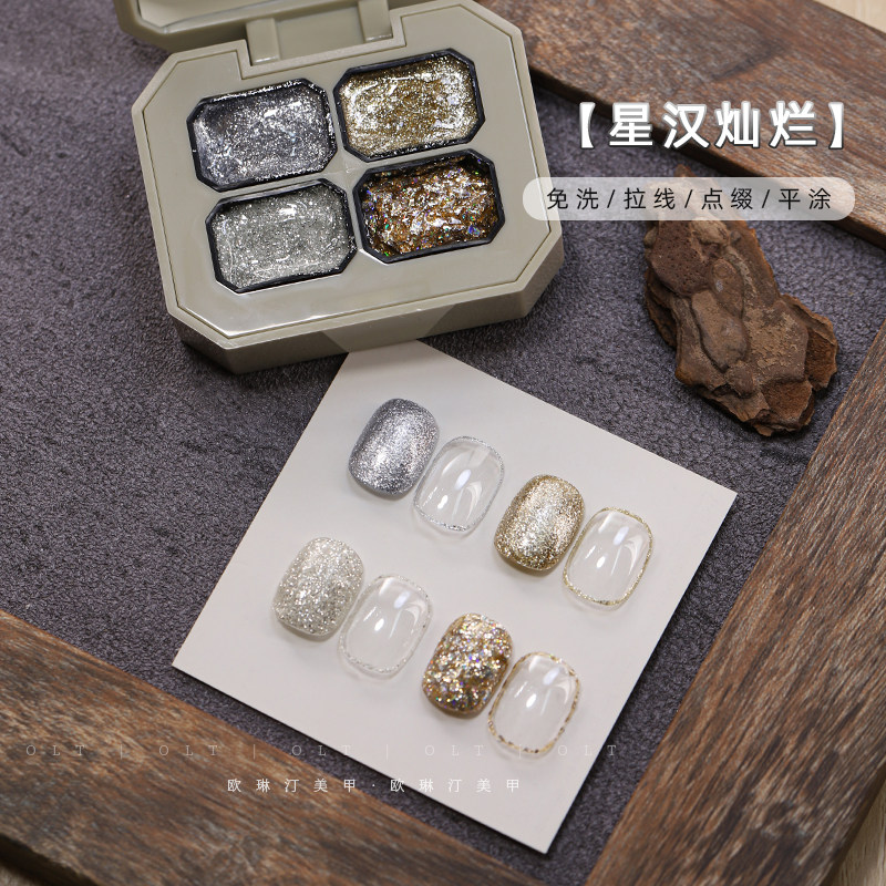 欧琳汀美甲免洗繁星高密勾边胶不流动星汉灿烂拉线平涂超闪甲油胶