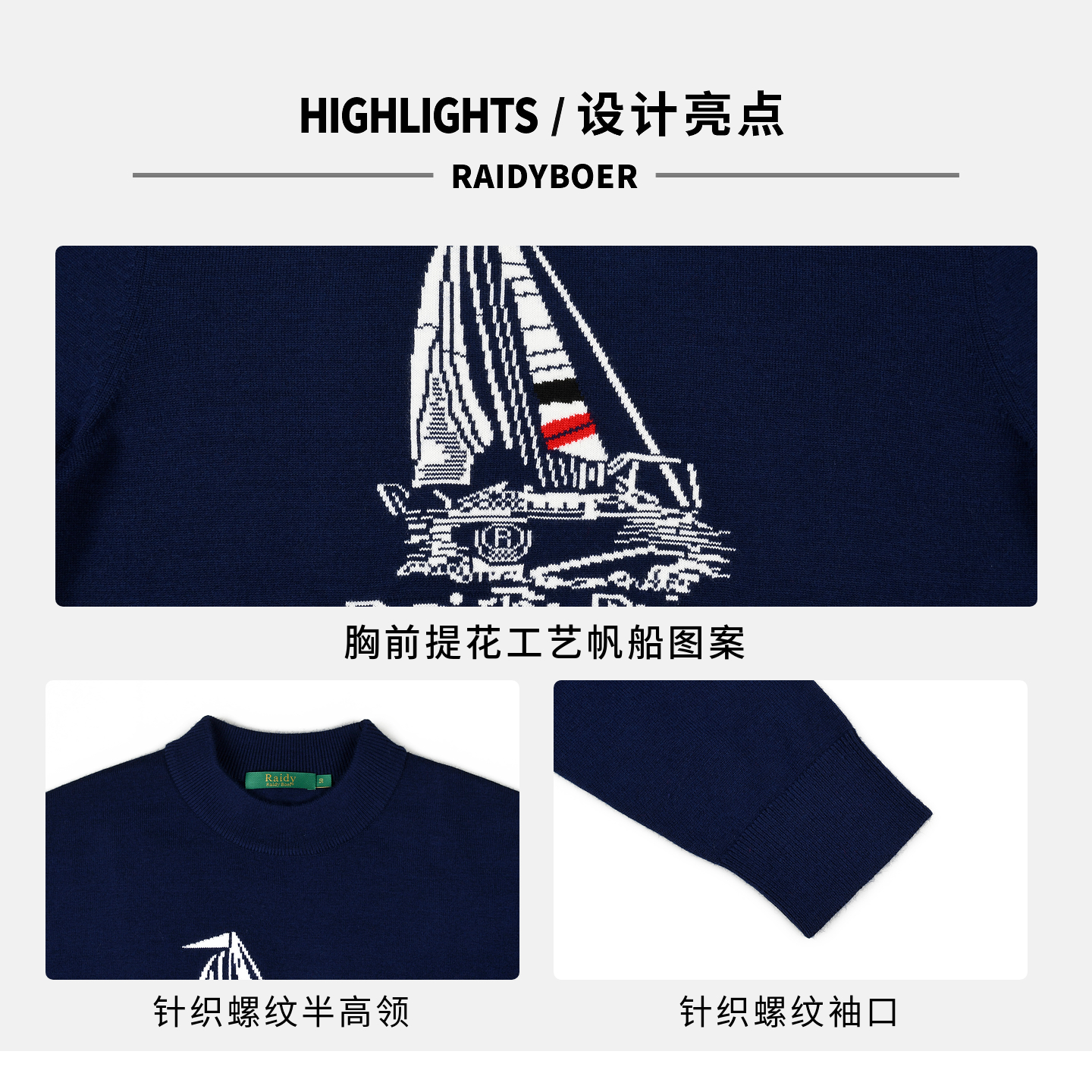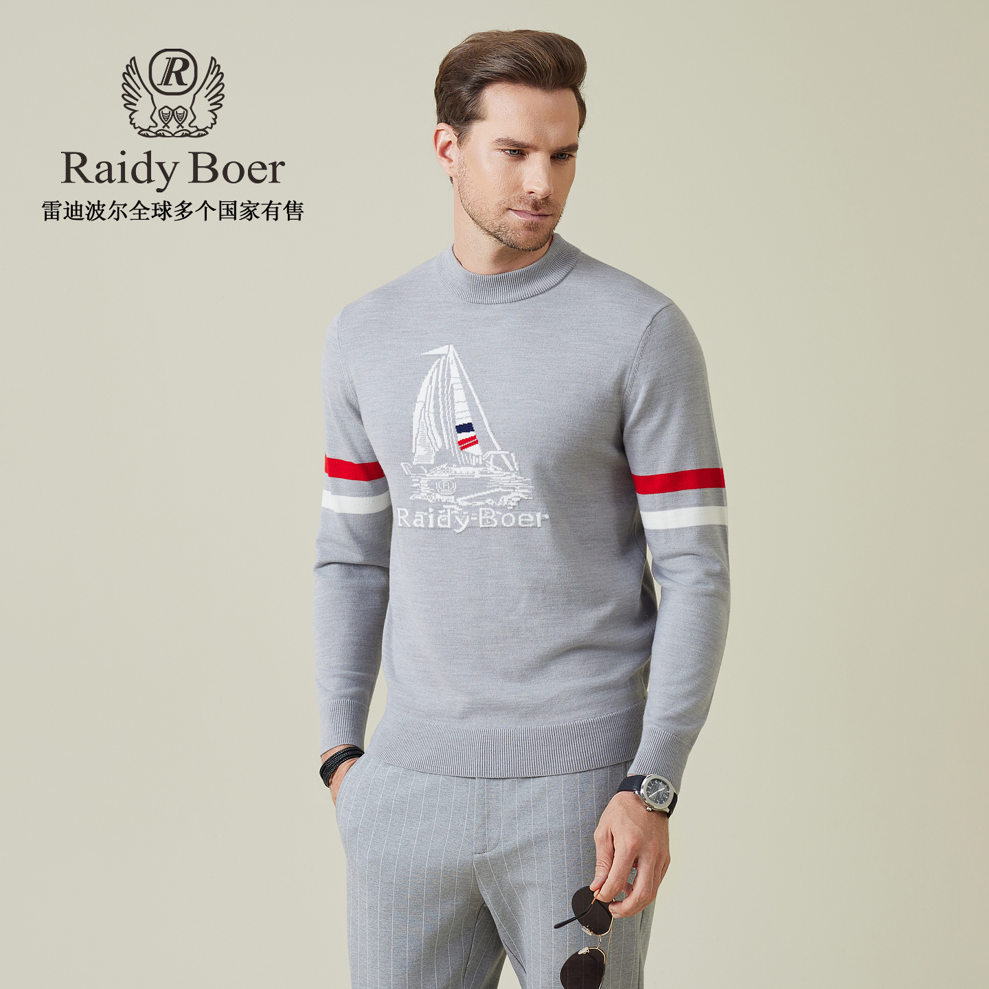 雷迪波尔男装针织毛衣2025秋季新款半高领提花舒适微弹羊毛上衣男