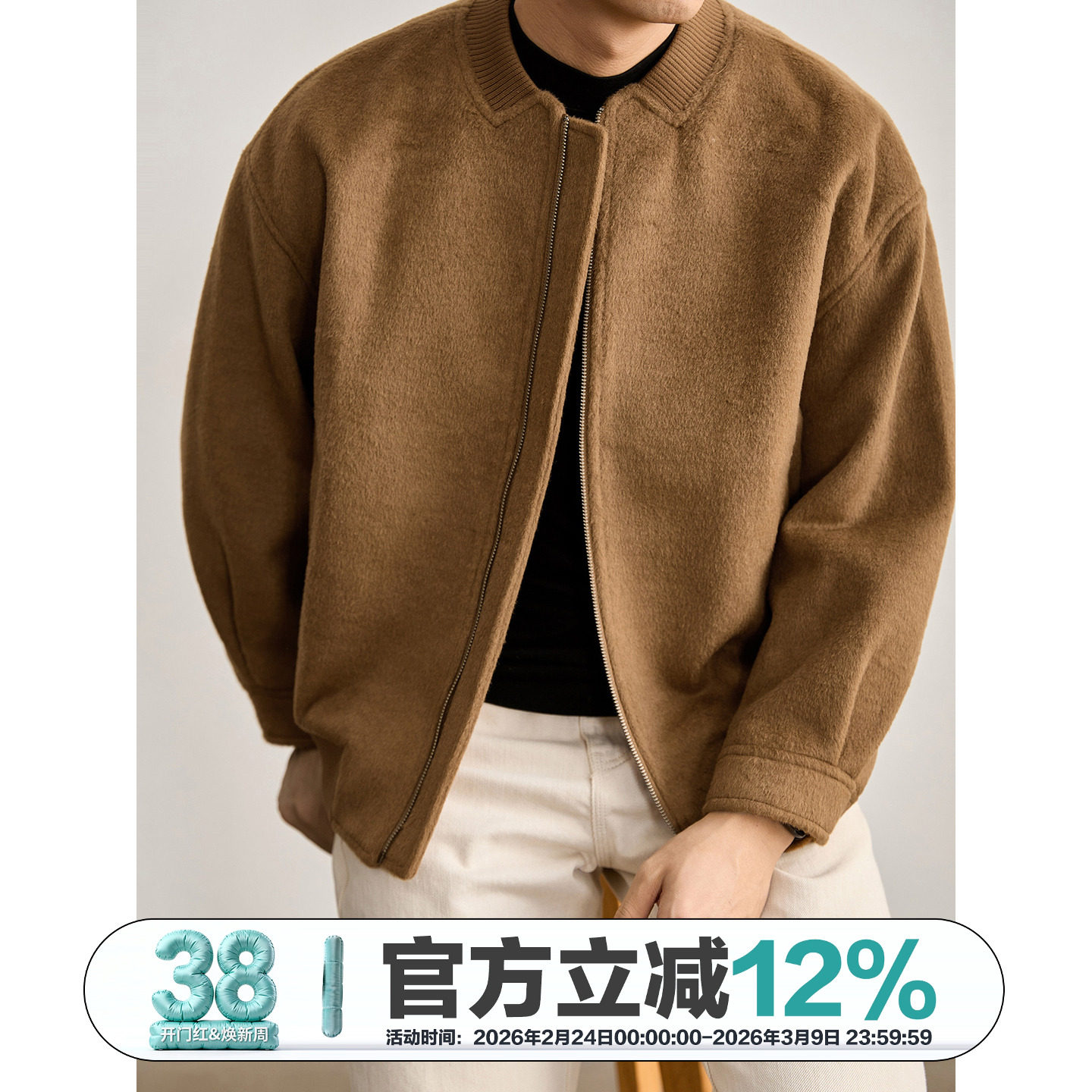 LUUD 绵羊毛混纺磨毛肌理毛呢夹克男冬季棒球领极简风短宽款外套