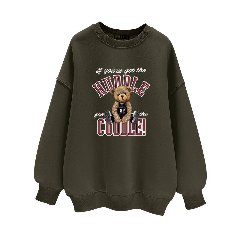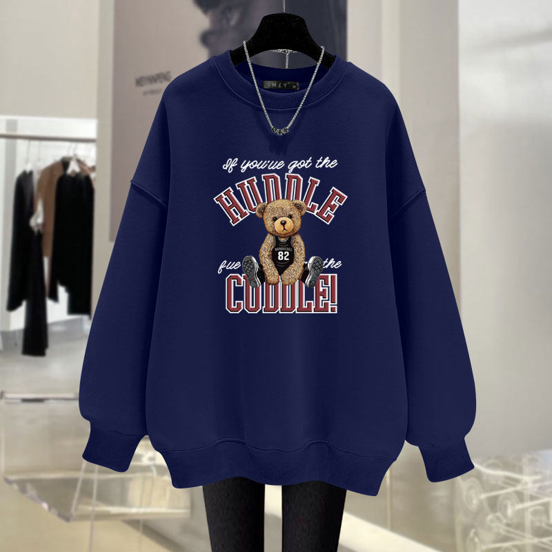 2025春秋冬季新款字母小熊中长款加绒加厚宽松套头圆领卫衣女潮