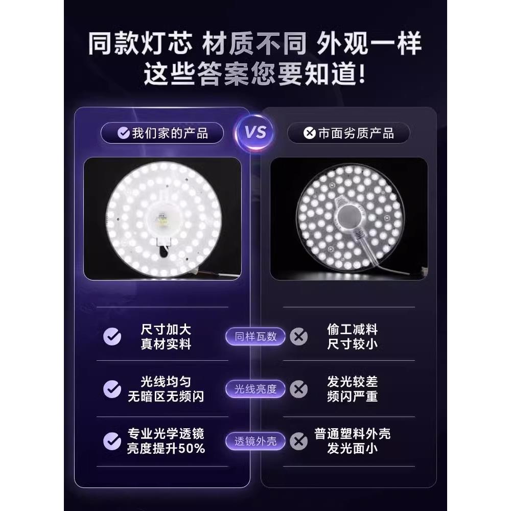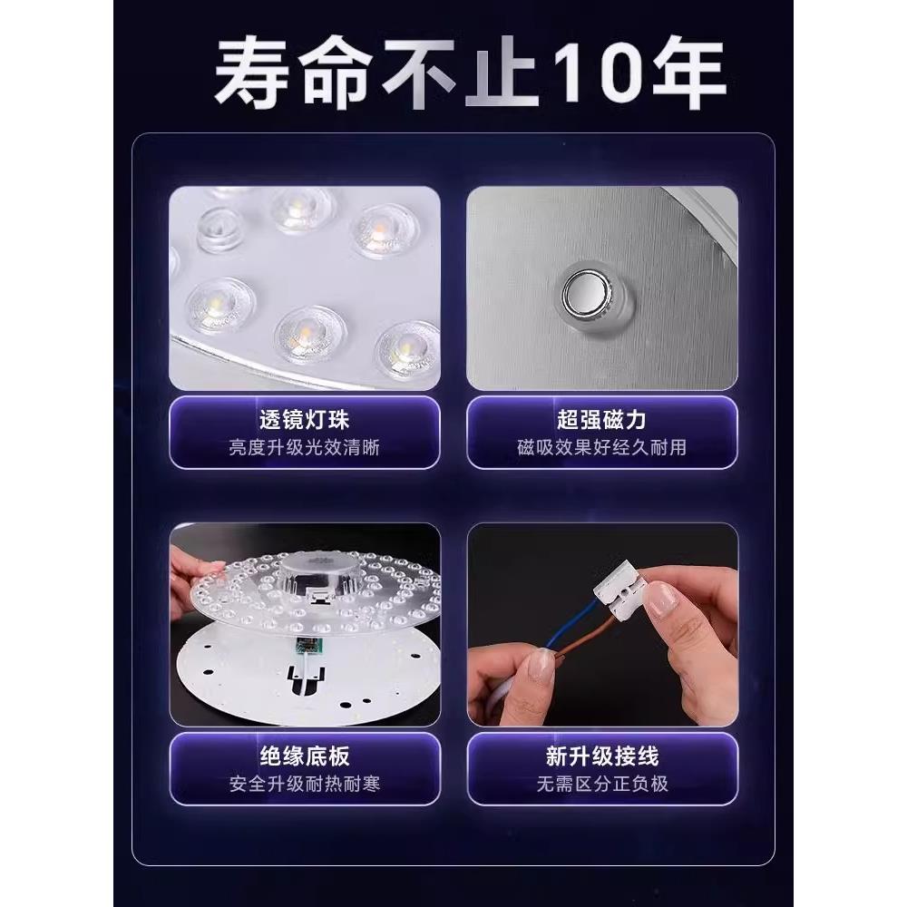 led吸顶灯替换灯芯卧室客厅圆形灯盘磁吸灯板改造光源家用节能灯