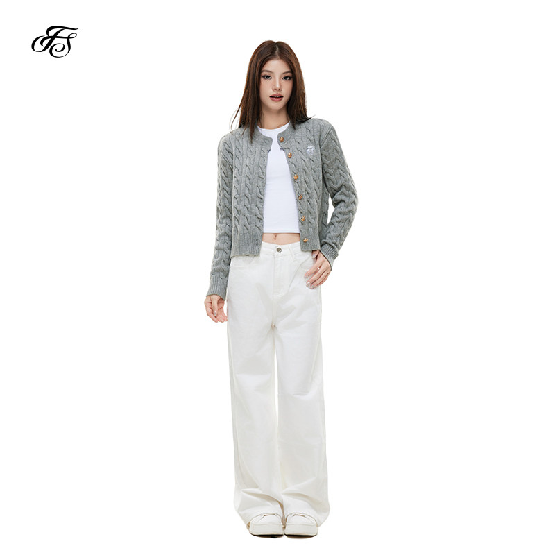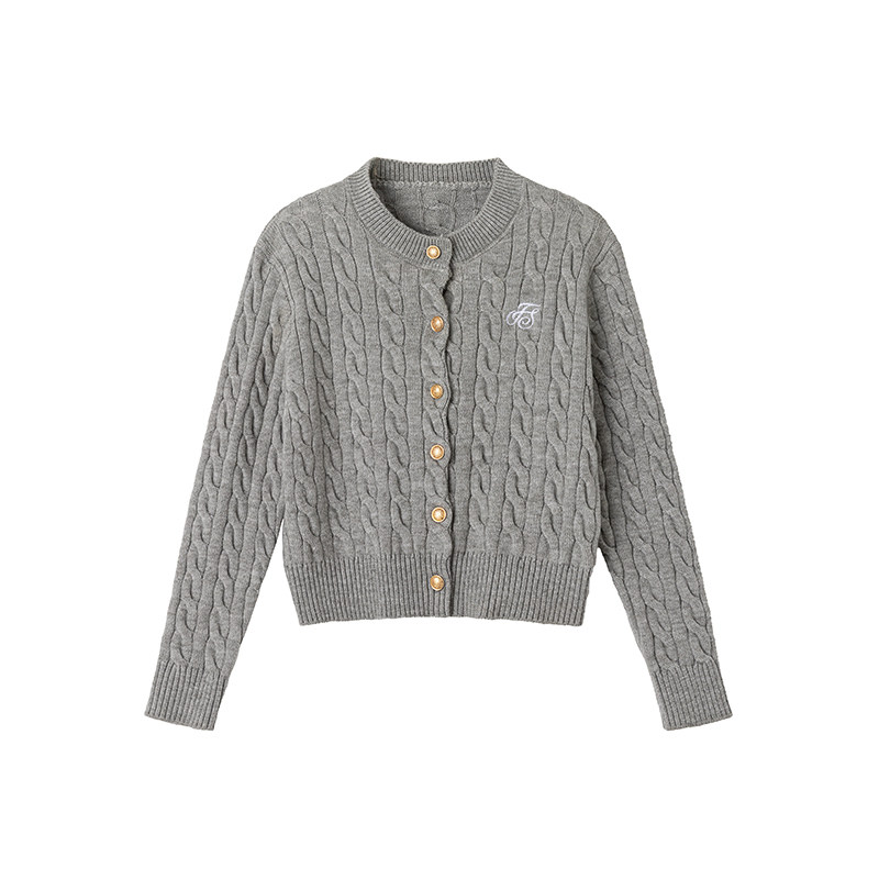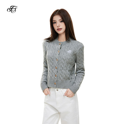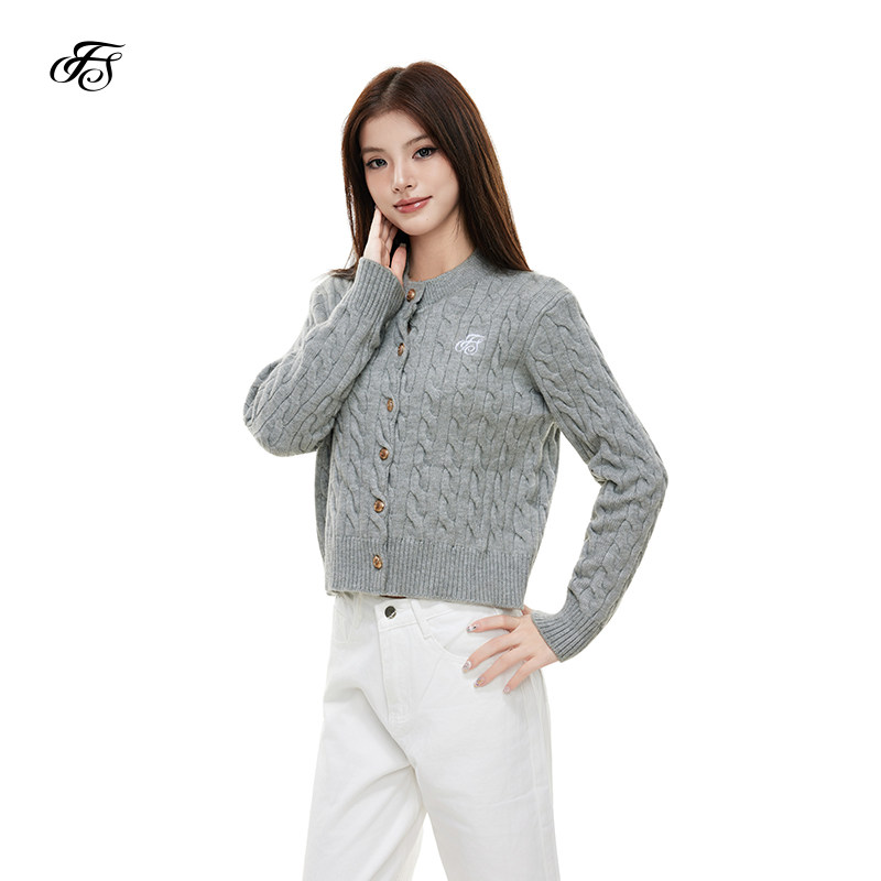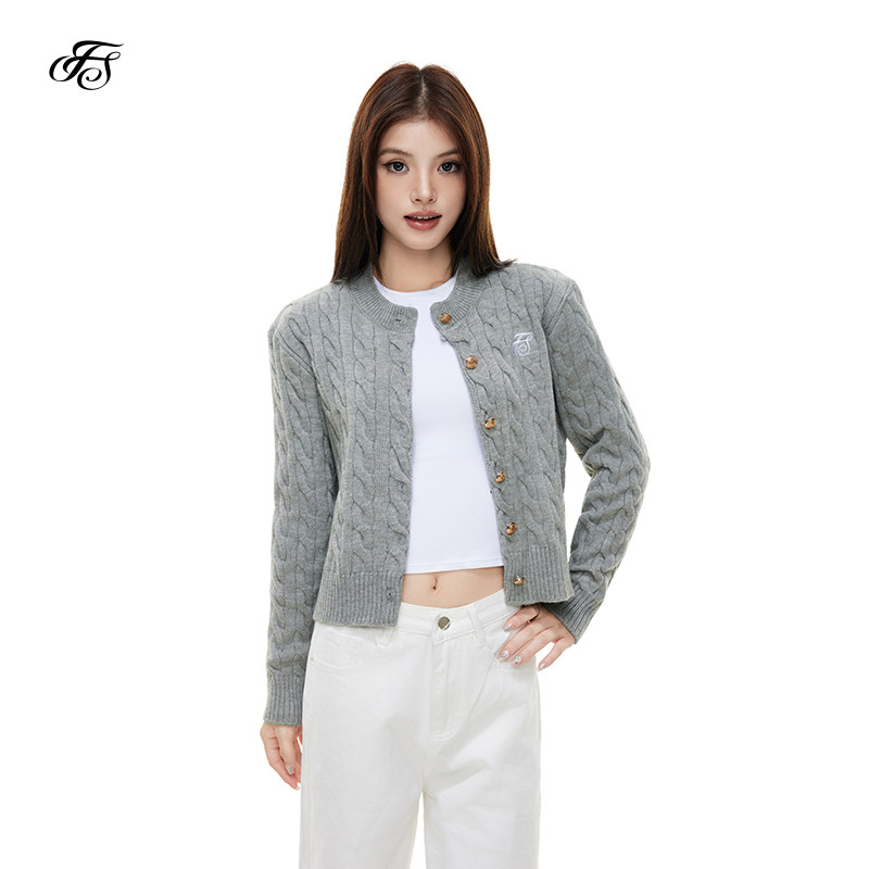 FISSXS 百搭刺绣纽扣短款针织外套上衣秋季新款毛衣开衫女
