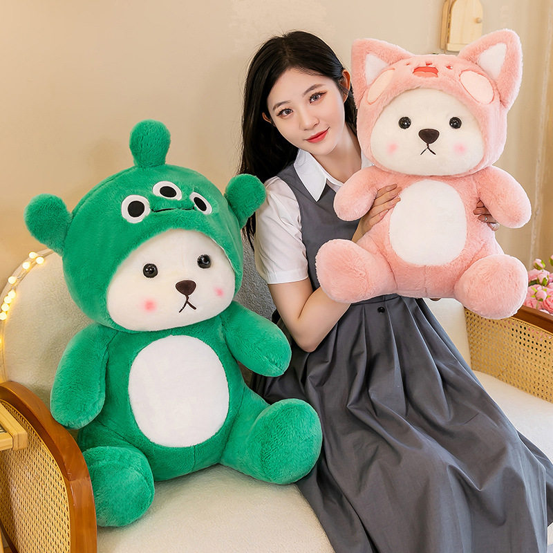跨境新款变身帽熊公仔七夕礼物娃娃女生毛绒玩具泰迪熊玩偶