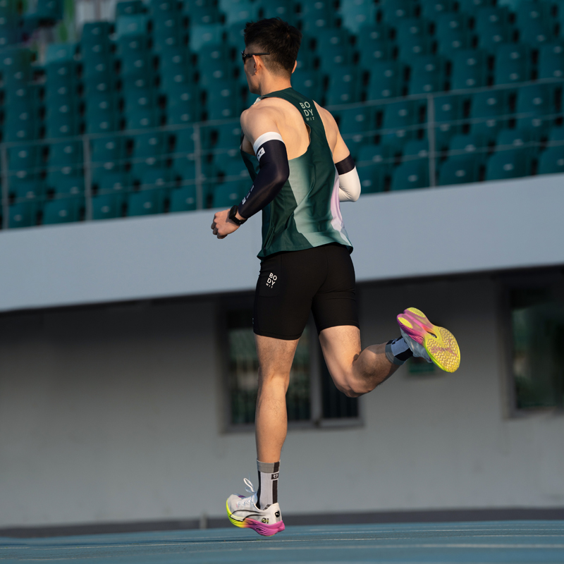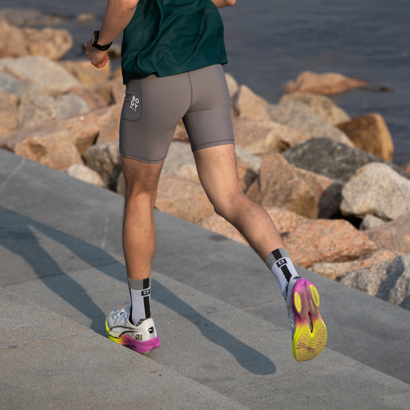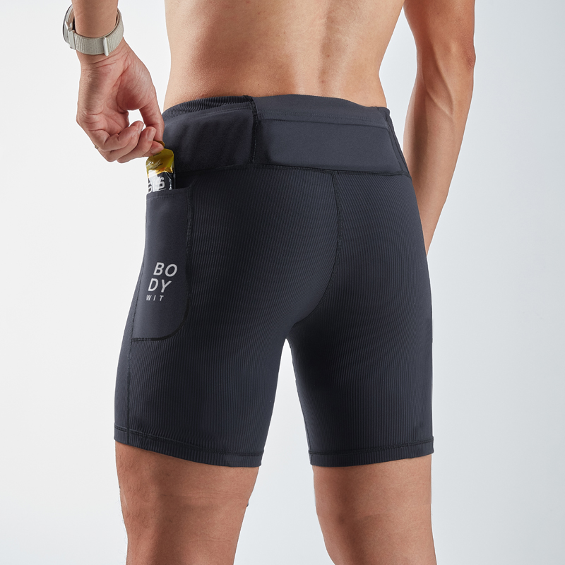 BODYWIT身体智慧男运动四分裤中度压缩速干防摩擦腰包马拉松跑步