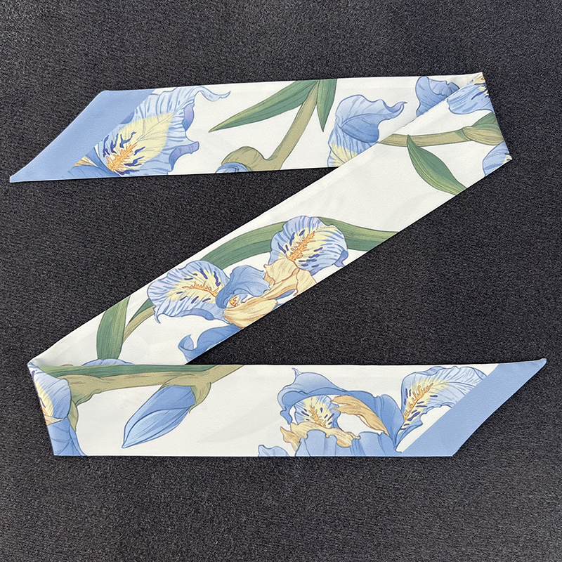 插画师复古水彩手绘植物花卉网脉鸢尾飘带丝带窄丝巾发带领巾腰带