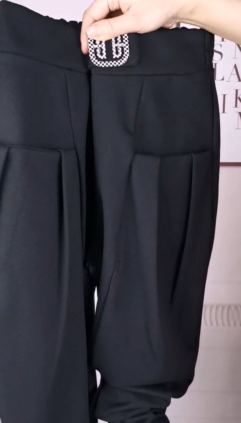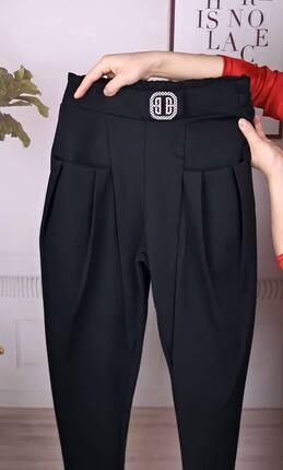 高腰哈伦裤黑色显瘦九分