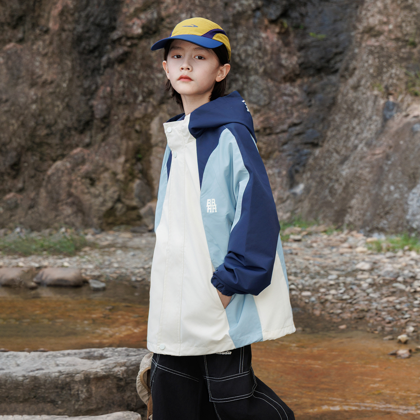 男童秋季撞色户外冲锋衣外套2025新款儿童男孩春秋防风运动夹克潮