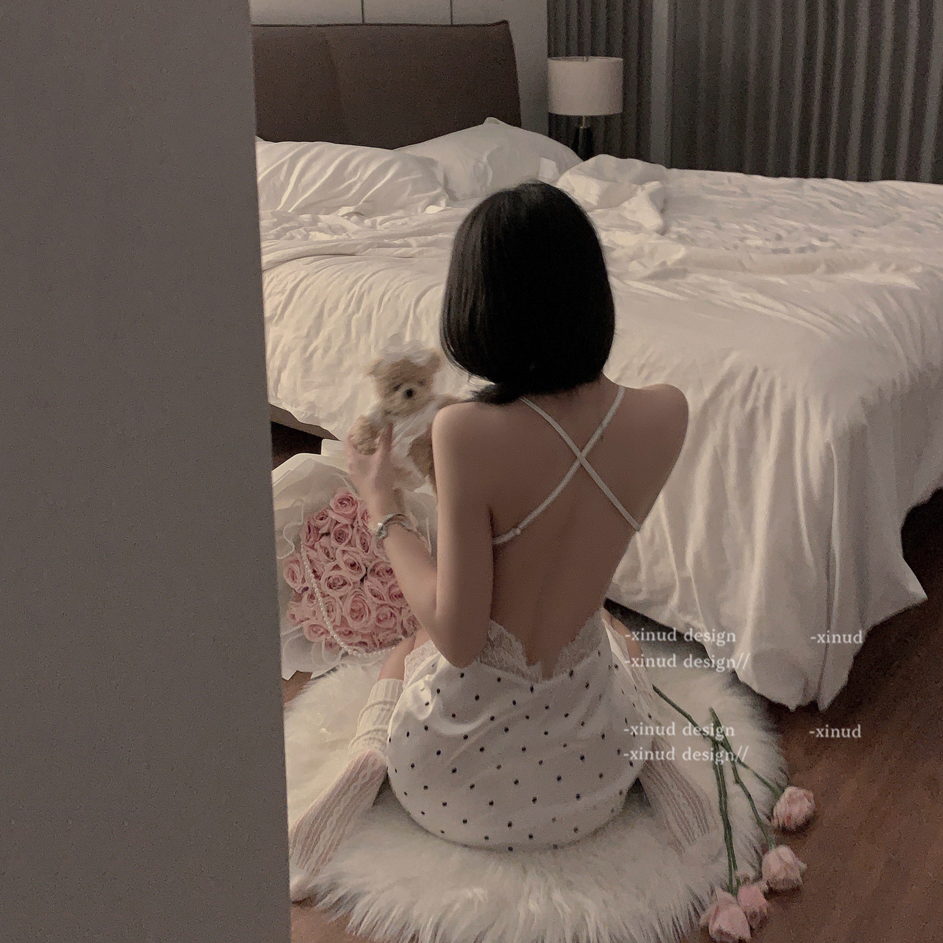 「LA」甜欲啵啵|软线系列*性感纯欲波点少女花边公主冰丝吊带睡裙