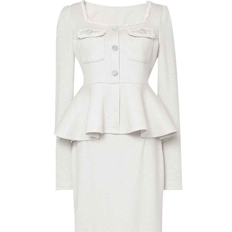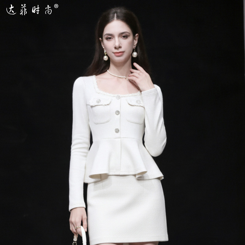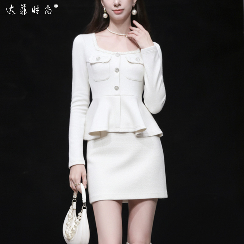 2025冬季新款气质小香方领收腰荷叶上衣+高腰短款半裙套装