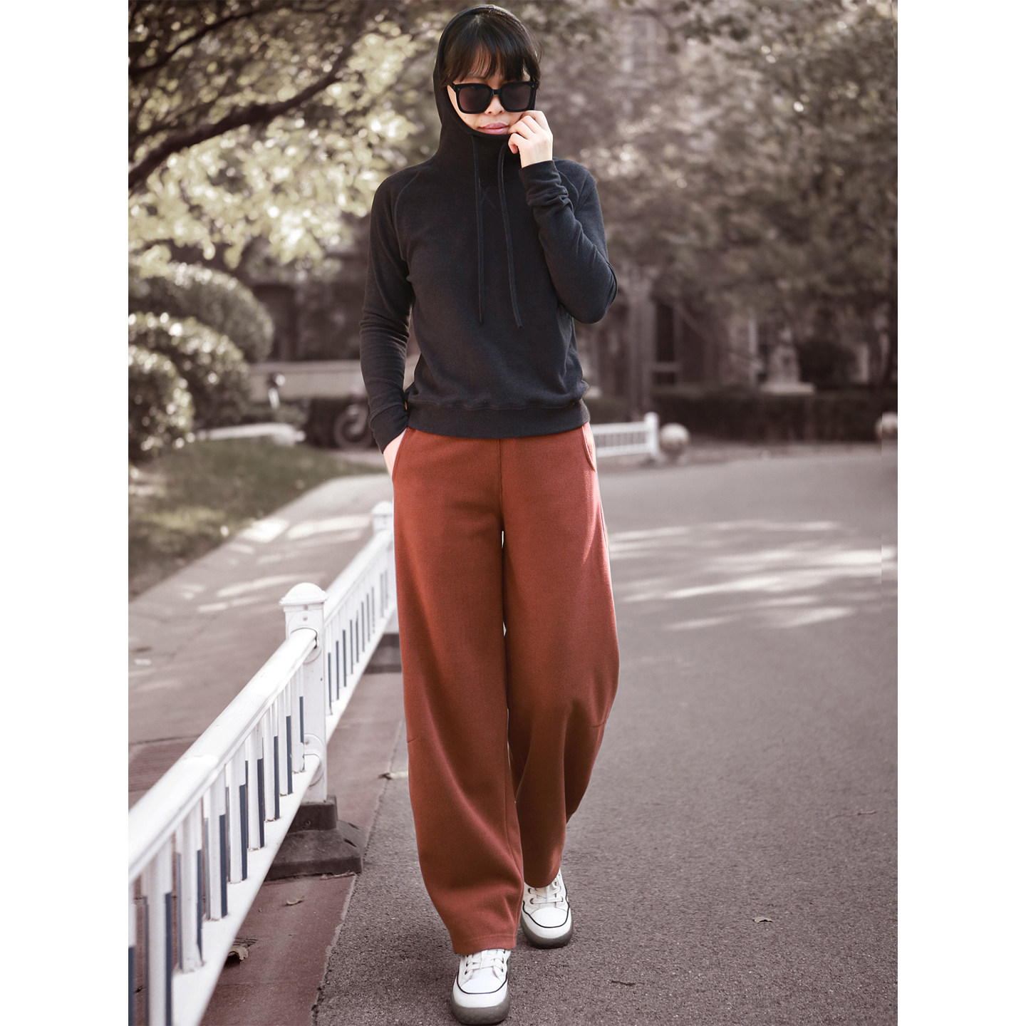 2025冬款休闲垂感阔腿裤香蕉裤镰刀裤显瘦松紧腰简约运动款萝卜裤