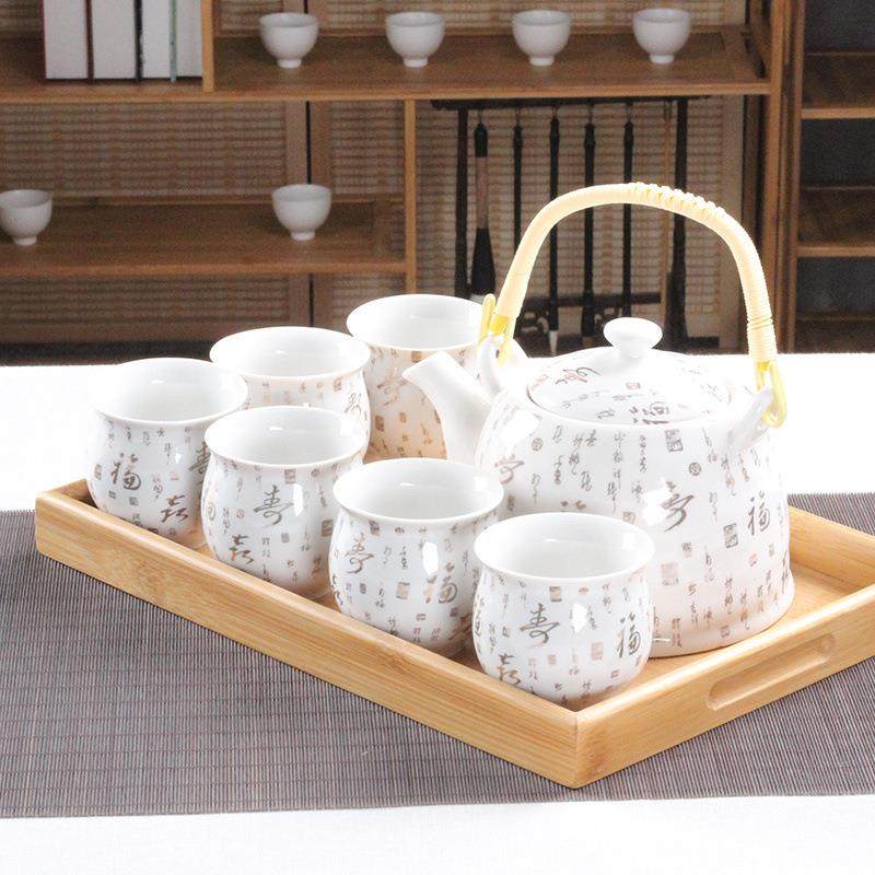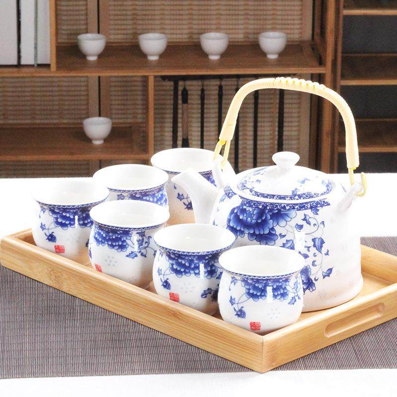 大号提梁壶茶具套装中老式陶瓷家用青花瓷泡茶壶茶杯托盘整套