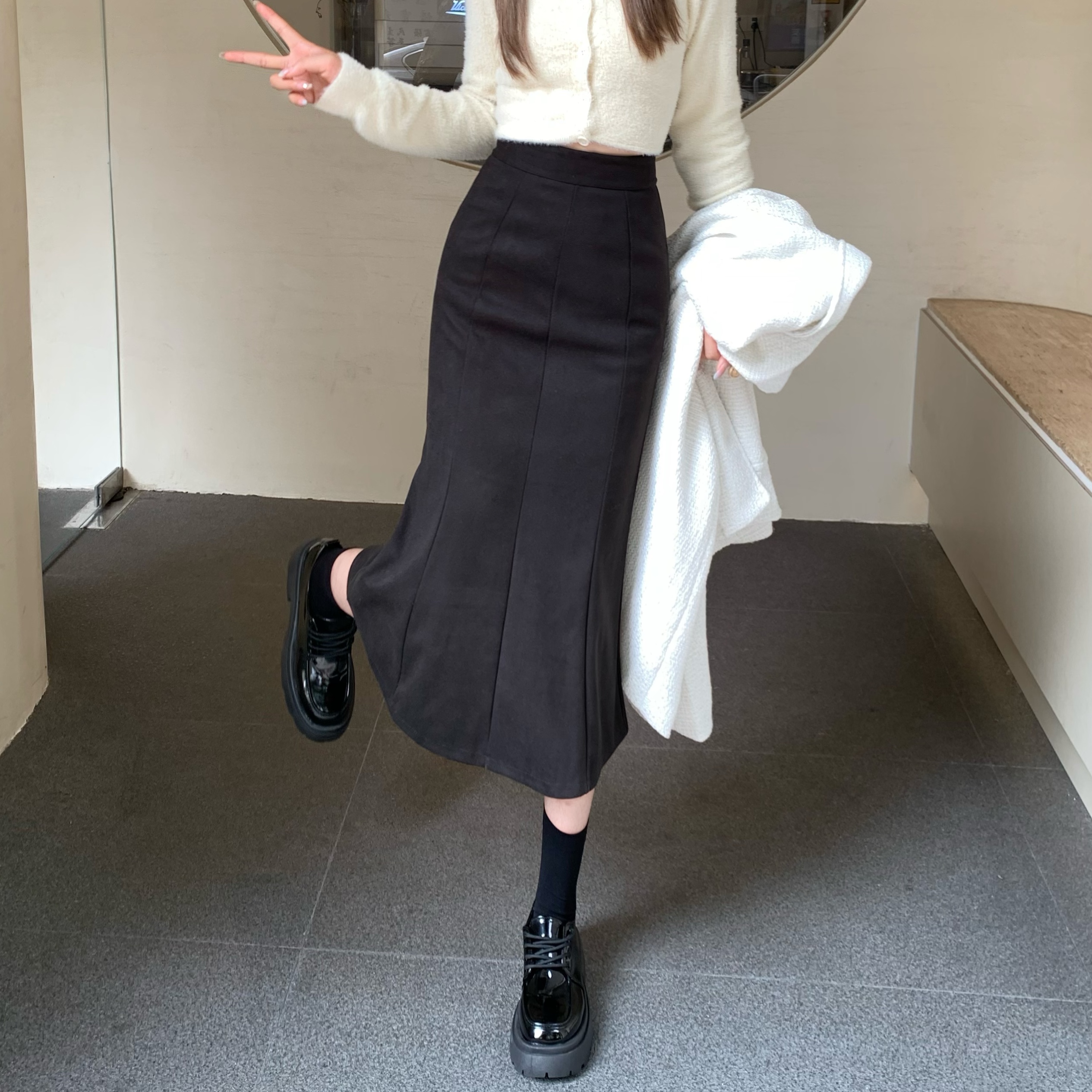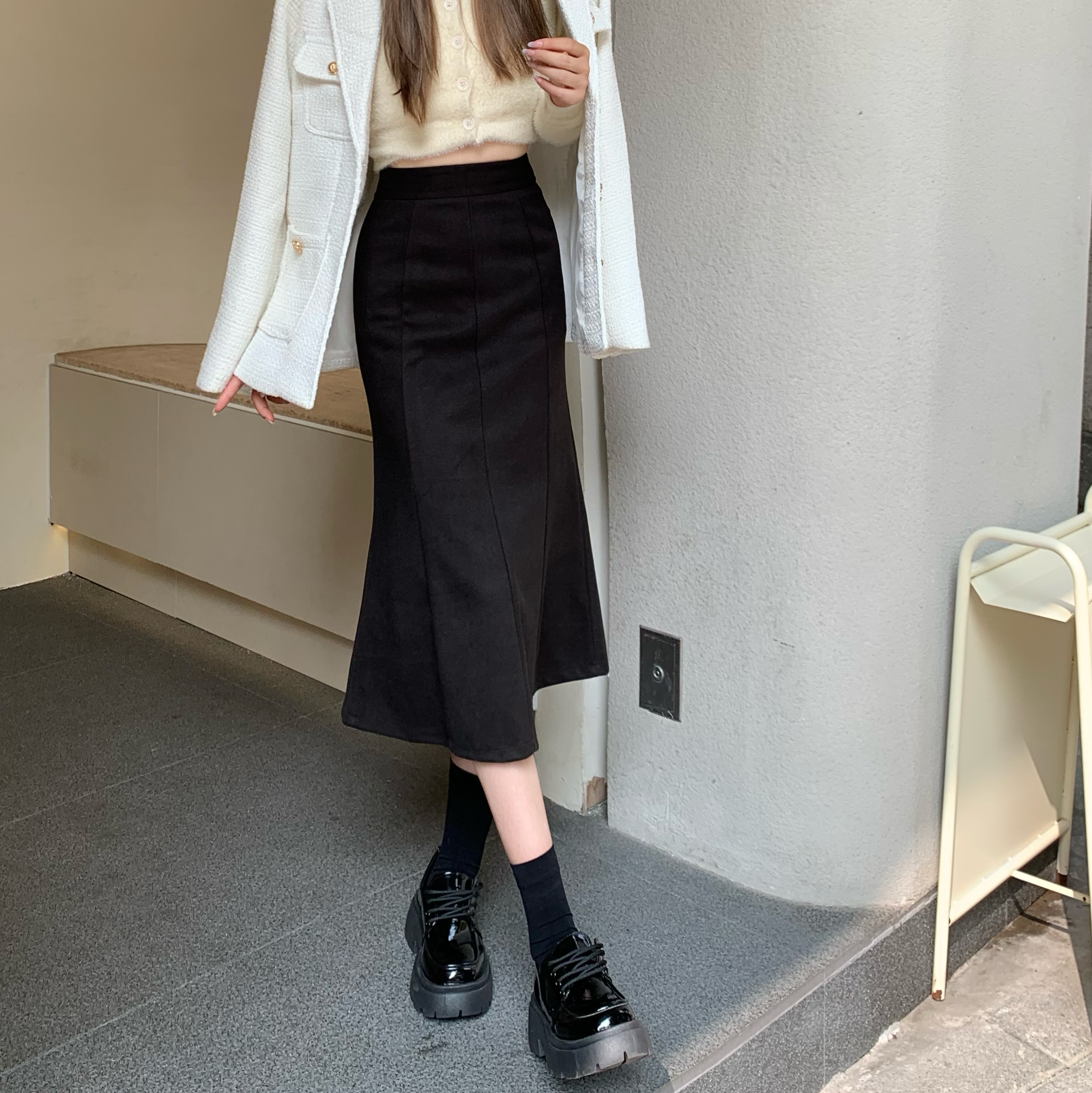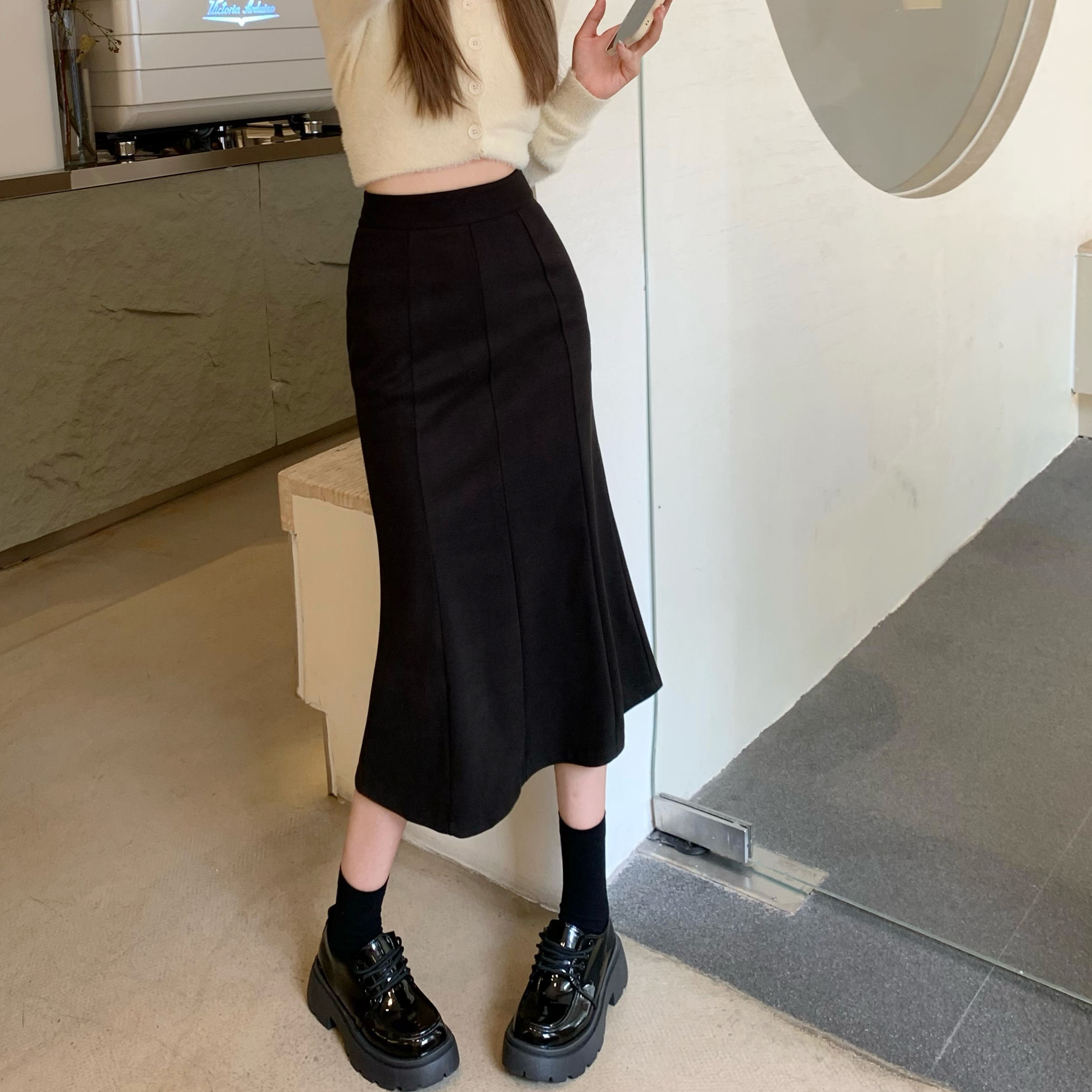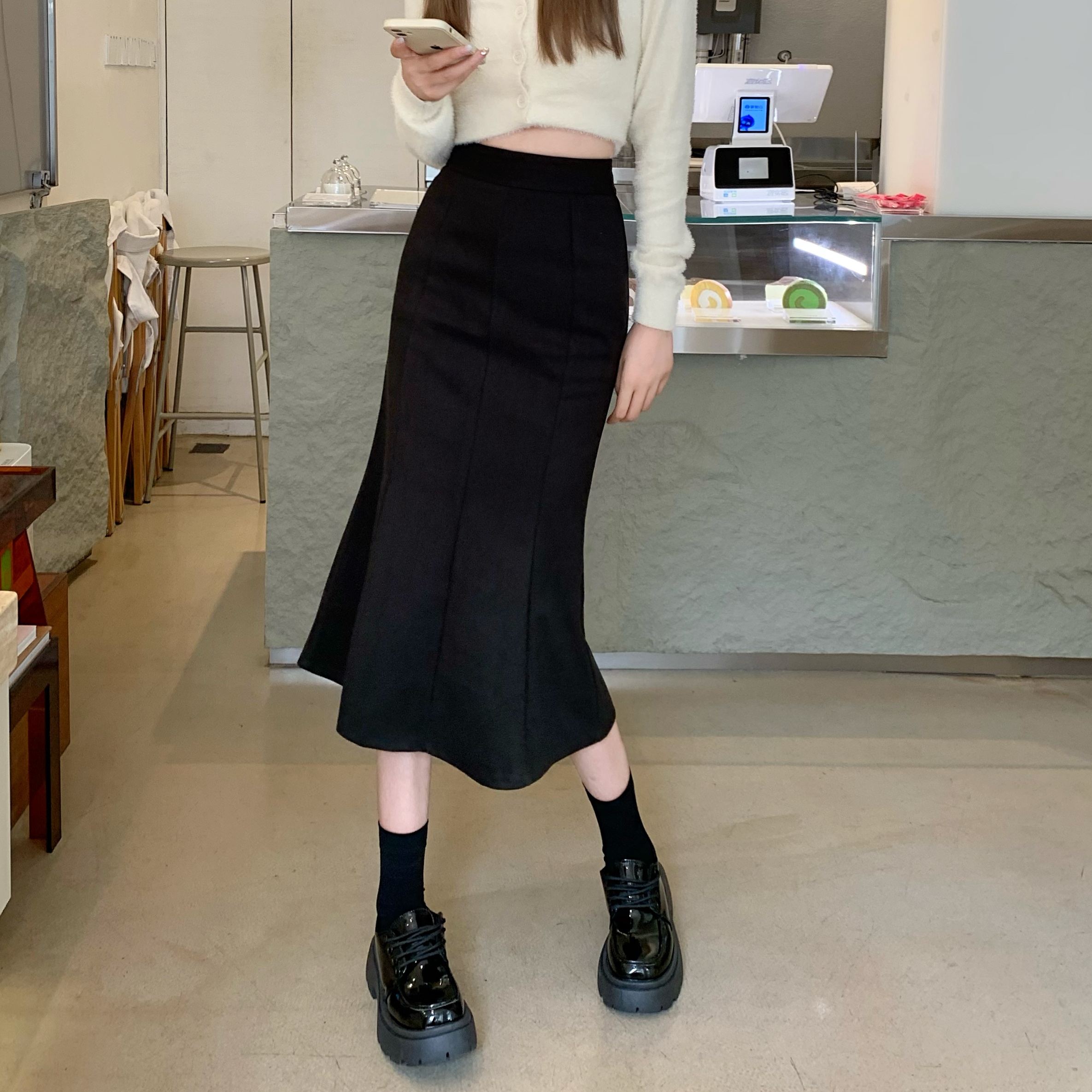 145小个子毛呢鱼尾裙女150cm秋冬高腰百搭包臀中长裙半身裙xxs码