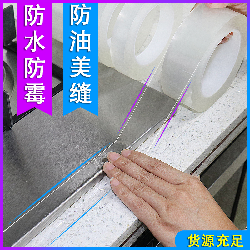 强力单面透明胶带厨房防霉防水胶带高粘度无痕纳米单面胶不残胶卫生间灶台水槽封边密封防撞美缝包边加厚门窗