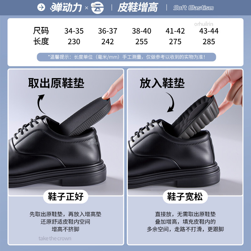 男士皮鞋专用增高鞋垫踩屎感隐形男生新郎结婚内增高垫不塌陷男款