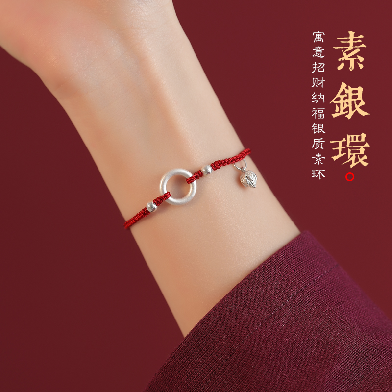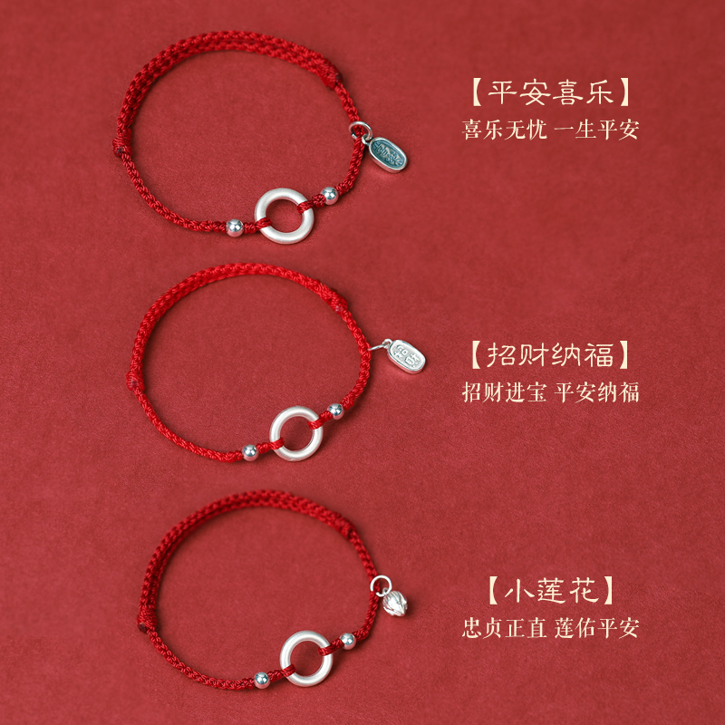 普陀山纯银平安扣红绳手链女生转运珠本命年好运编织绳手绳护身符