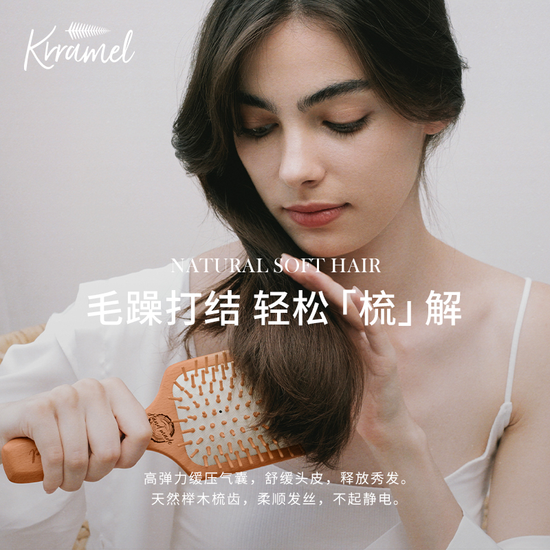 KRRAMEL礼物女生气垫梳按摩头皮经络木梳子女士专用梳子实用高级