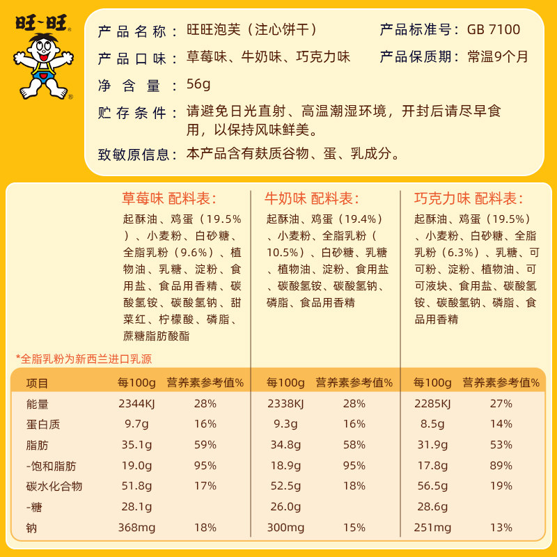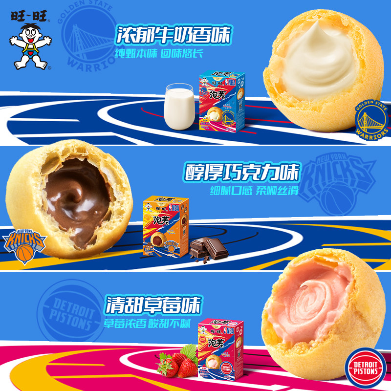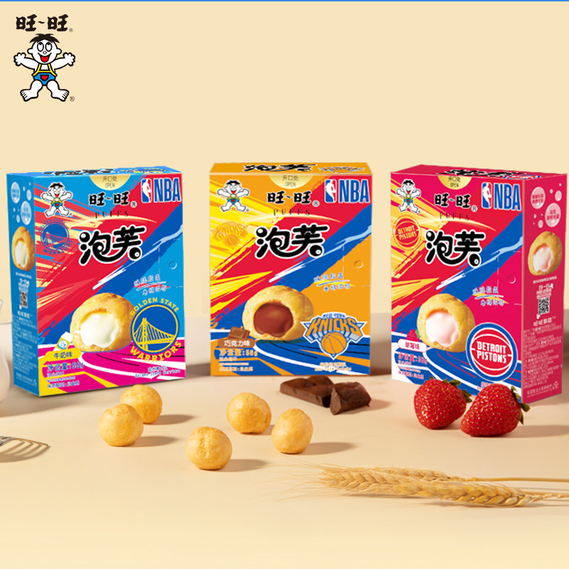 旺旺泡芙NBA联名款牛奶巧克力草莓味泡芙威化注心饼干休闲零食