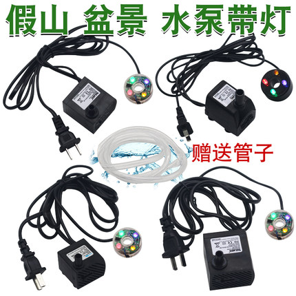 水泵鱼缸上水石流水泵假山风水轮抽水泵循环泵鱼池水泵5W6W8W带灯