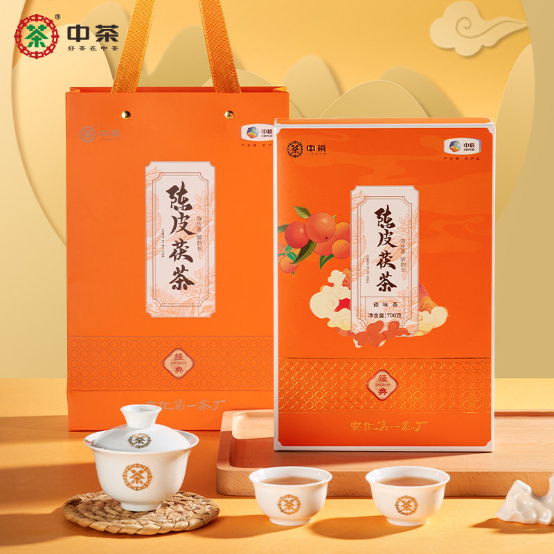 中茶安化黑茶金花手筑茯砖茶叶菌香醇茯冰碛岩陈皮黑茶大砖茶收藏