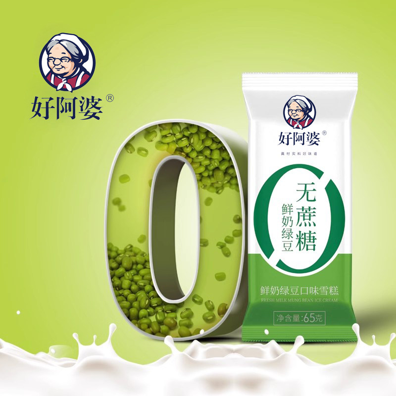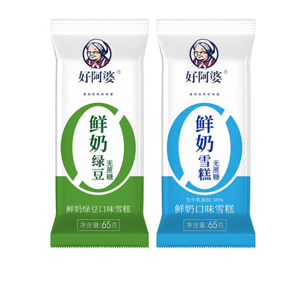 好阿婆0蔗糖鲜奶绿豆多口味雪糕