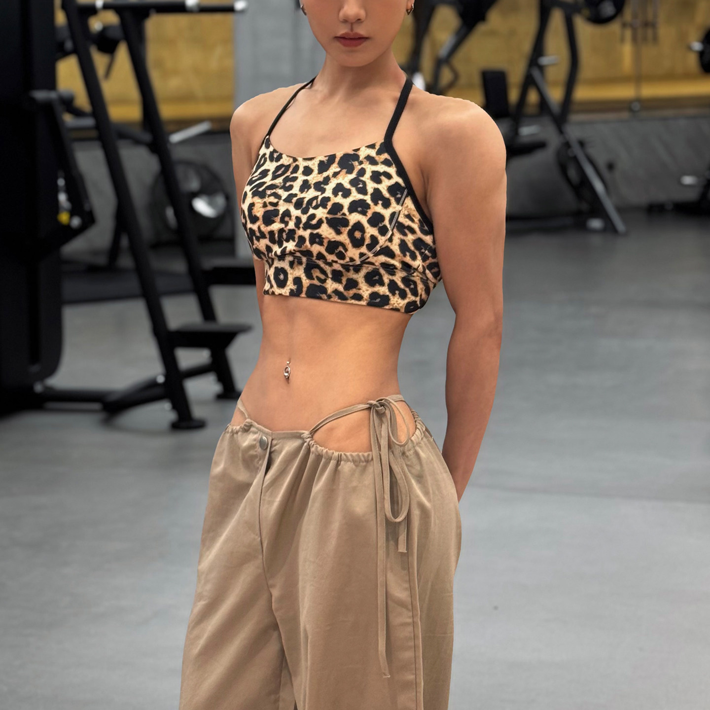 欧美T字美背运动内衣豹纹细吊带显肩背健身文胸瑜伽服训练背心