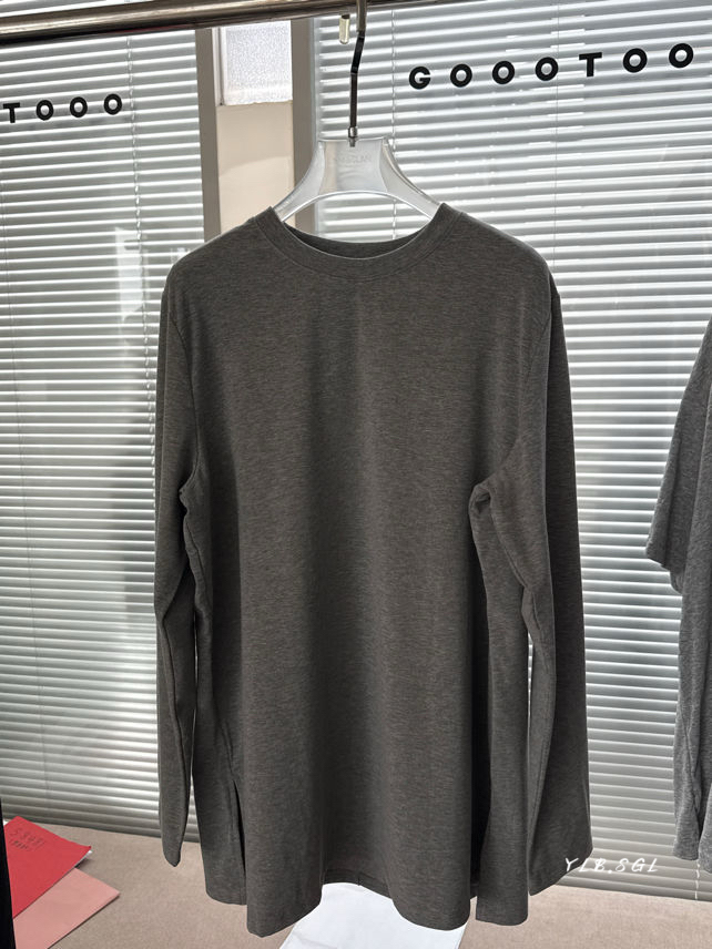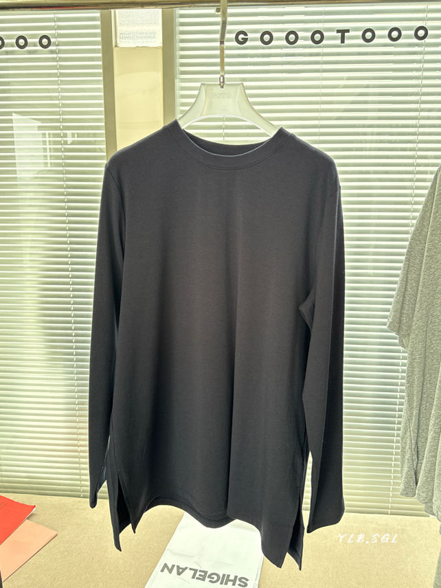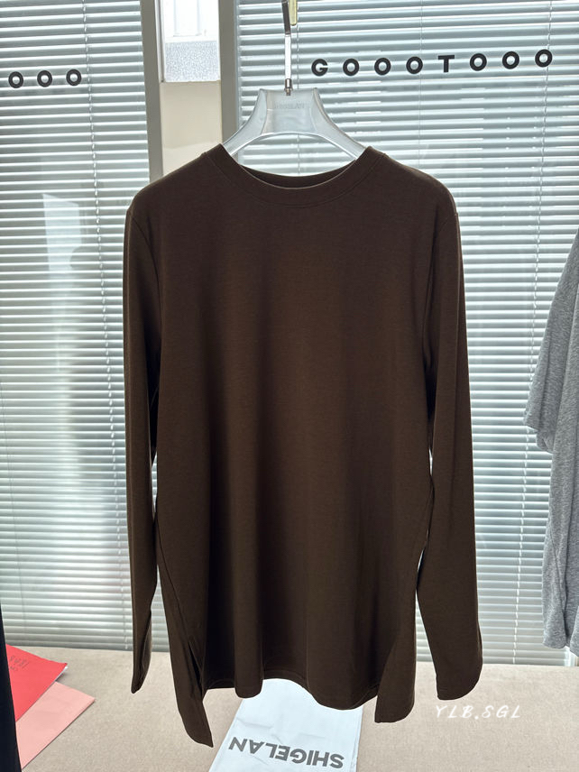 58585诗歌兰女装2025冬款百搭款圆领中长款开衩磨毛白色T恤打底衫