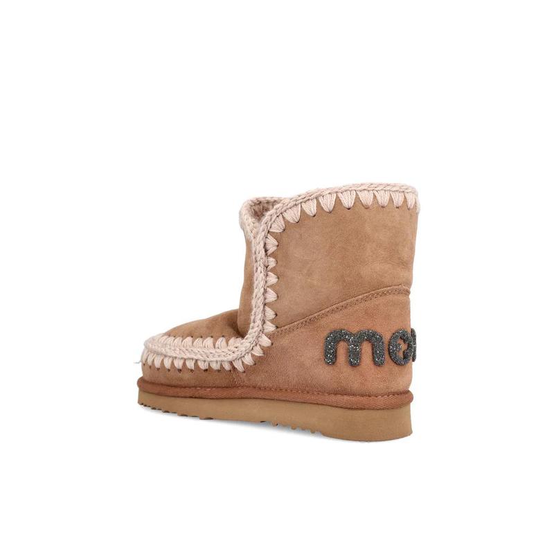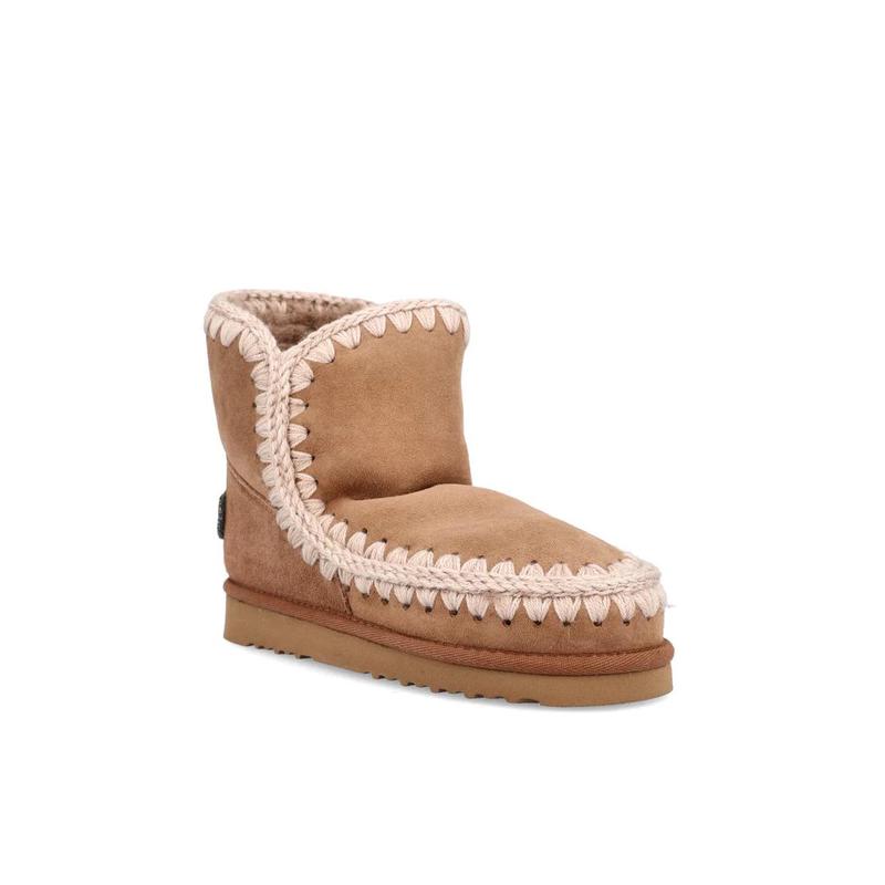 MOU女士雪地靴保暖软底防滑舒适牛皮短筒缝线装饰U型标识冬季