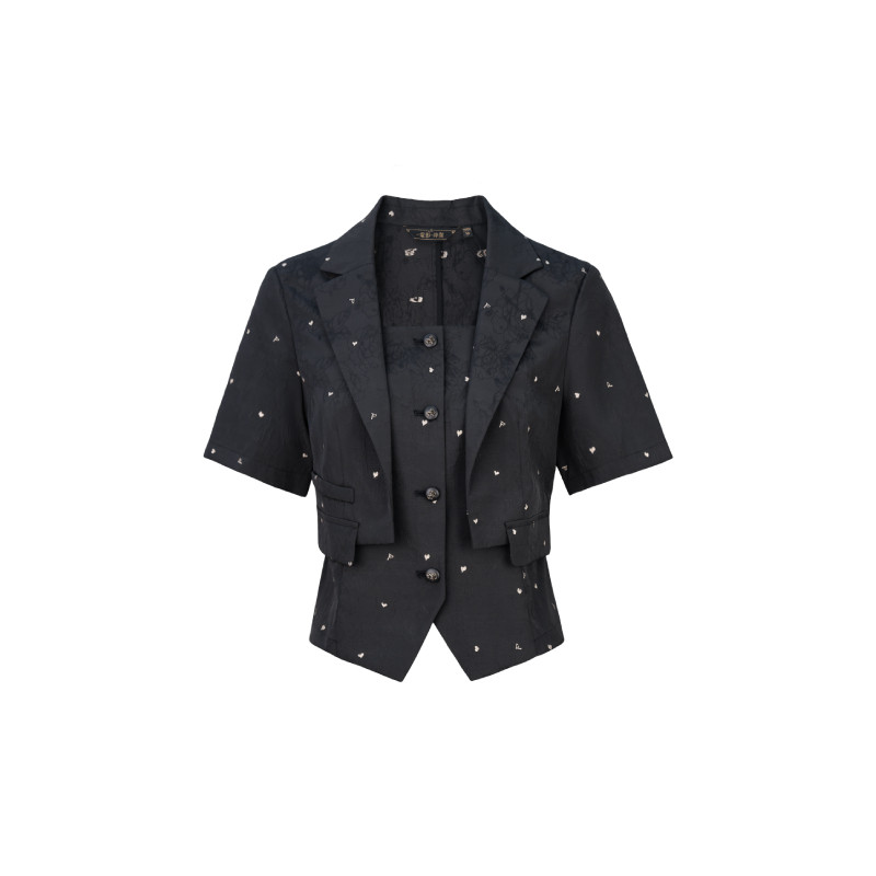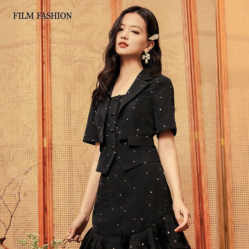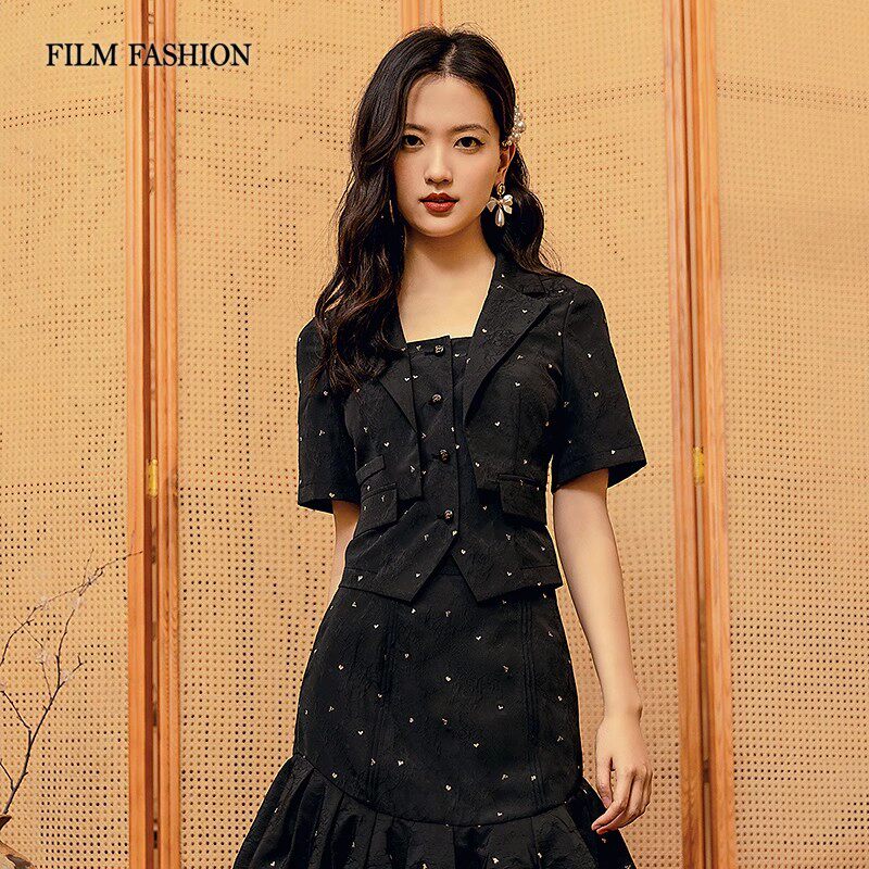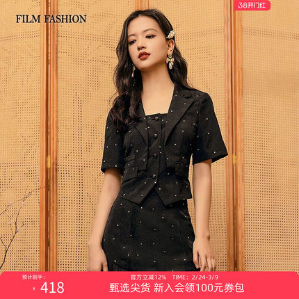 一电影一时装秋翻领提花短西装外套小衫气质休闲时尚女小个子