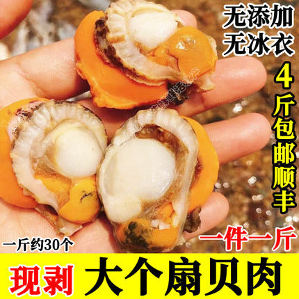 现剥新鲜大扇贝肉速冻鲜海贝柱肉开袋即烹火锅烧烤食材顺丰一斤