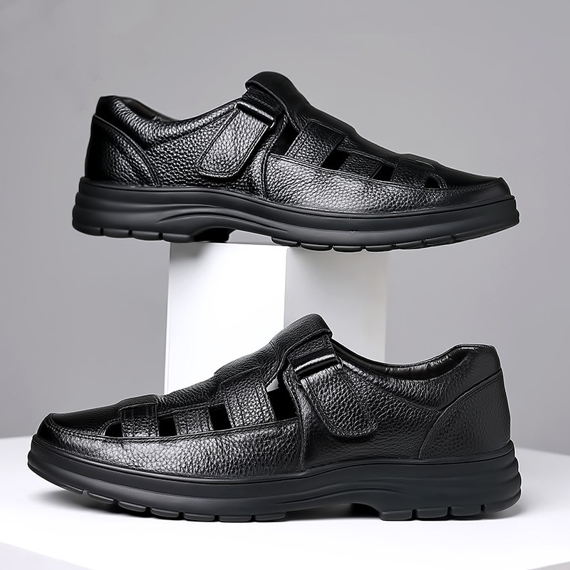 皮鞋男凉鞋夏季透气薄款真皮商务休闲鞋软底镂空打孔男鞋爸爸鞋子