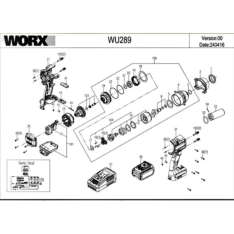 威克士WU289电动扳手配件 机壳螺钉中间盖齿轮箱开关WORX正品配件