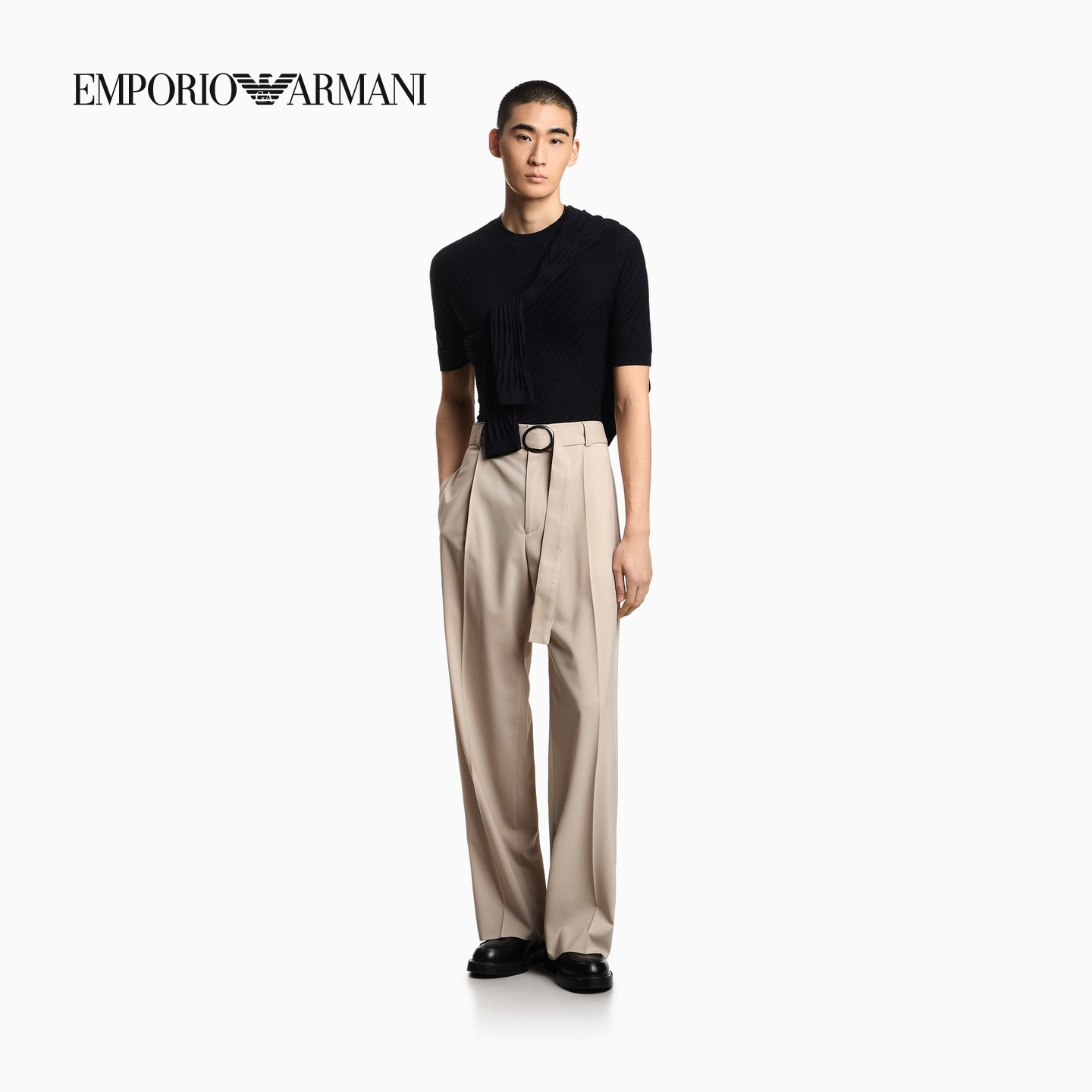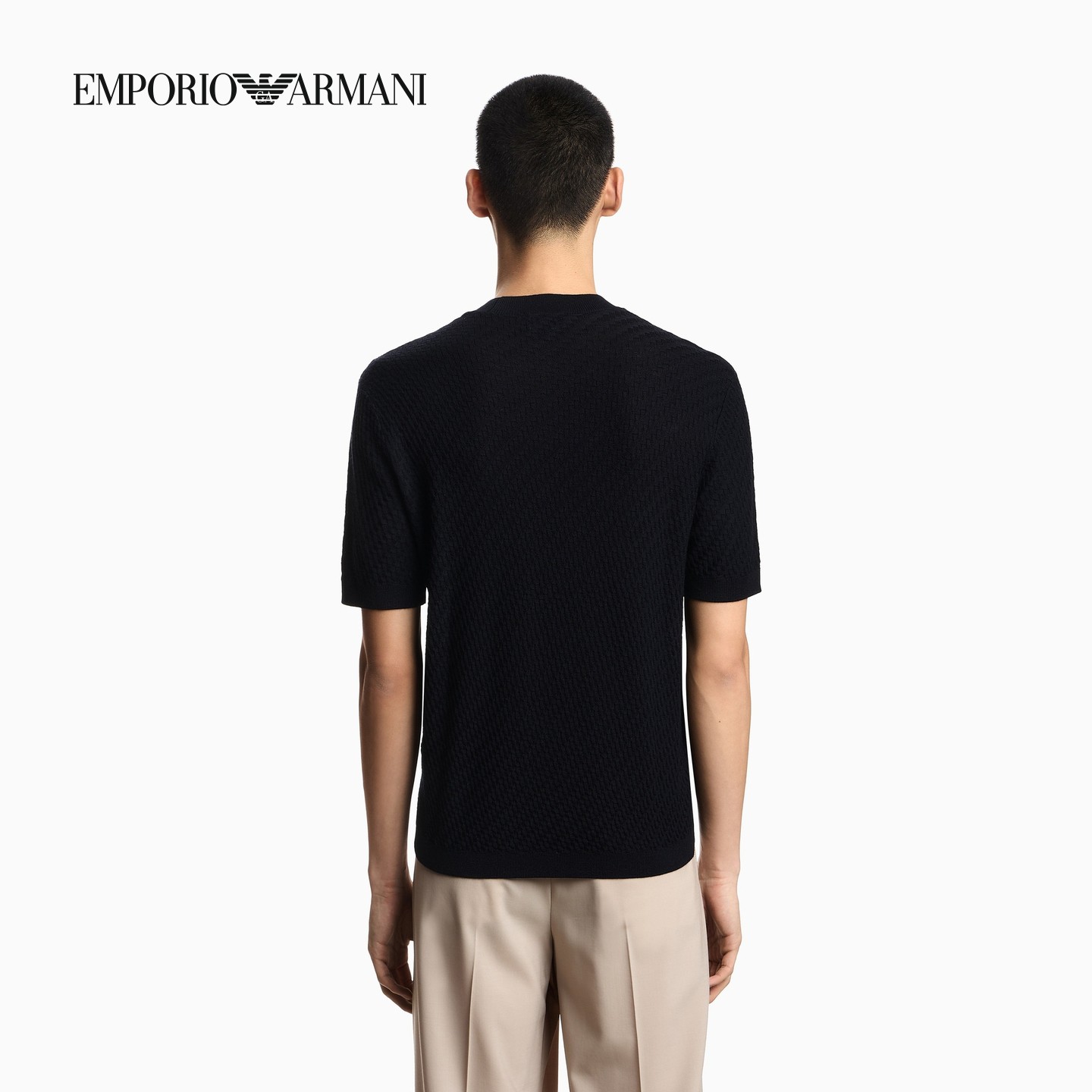 EMPORIO ARMANI/阿玛尼26年春季新款男士绵羊毛圆领短袖针织衫