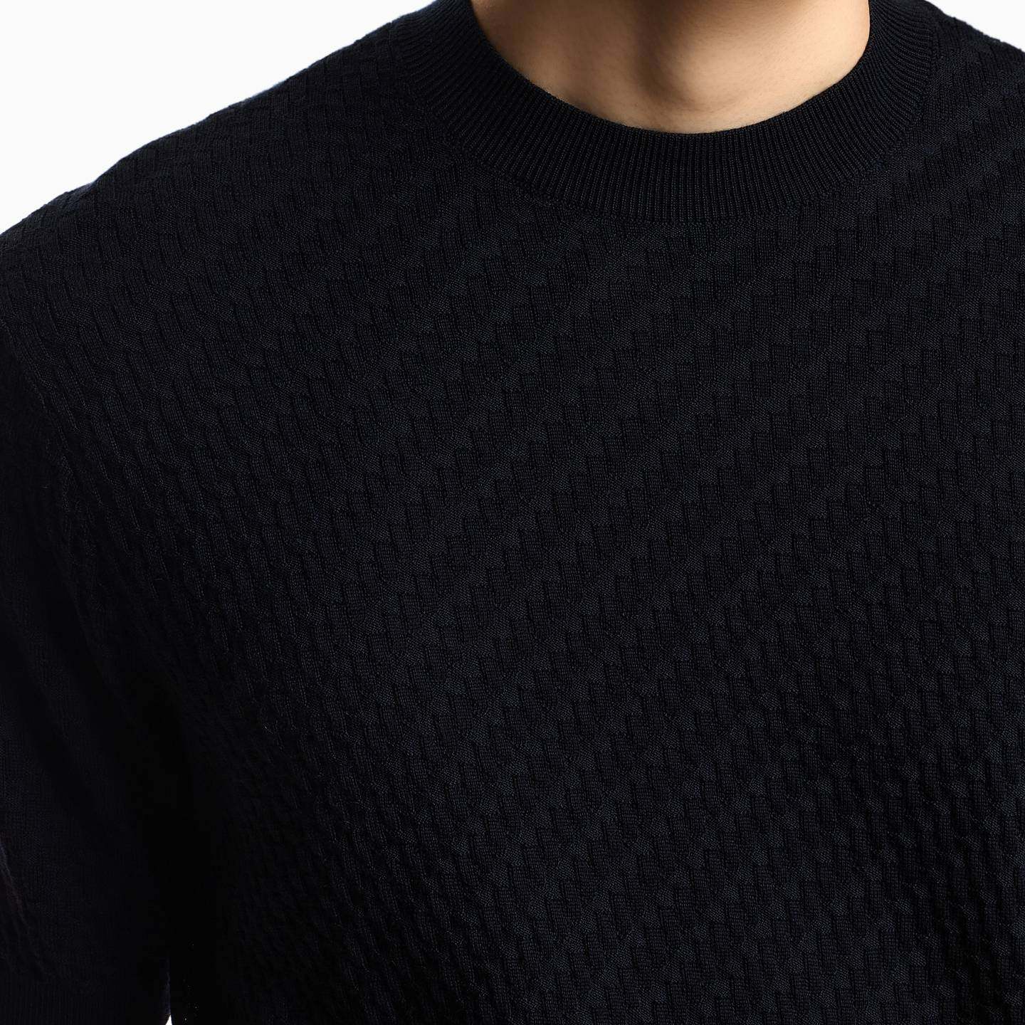 阿玛尼男士绵羊毛圆领短袖针织衫