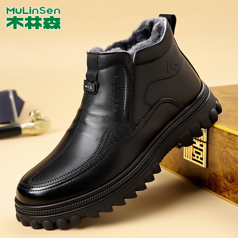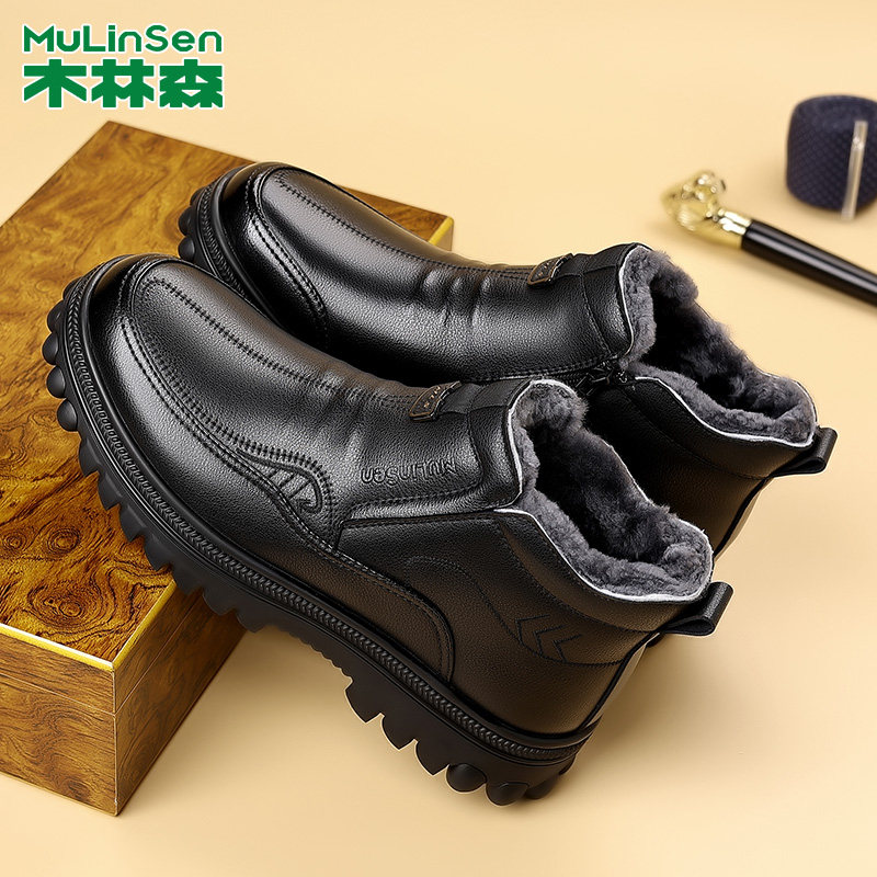 木林森冬季加厚保暖高帮棉皮鞋