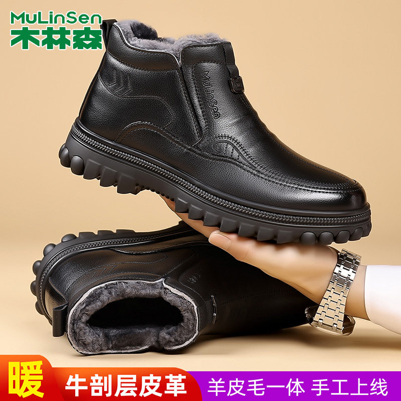 木林森棉鞋男款冬季2025新款加厚保暖雪地靴羊皮毛一体东北大棉鞋