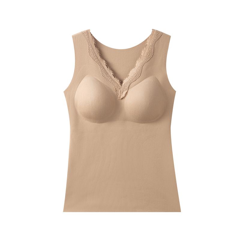 猫人保暖背心女带胸垫羊毛蚕丝内衣加绒加厚无痕秋冬款打底上衣