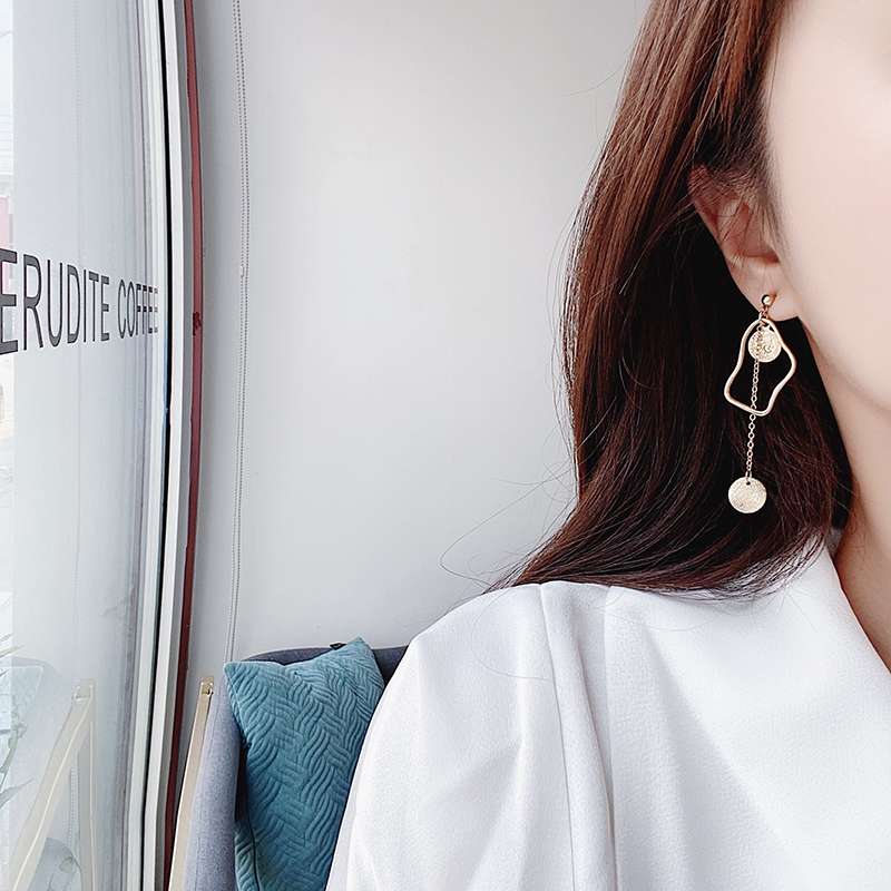 S925银针高级感不对称耳坠欧美嘻哈几何不规则复古长款耳环耳夹女