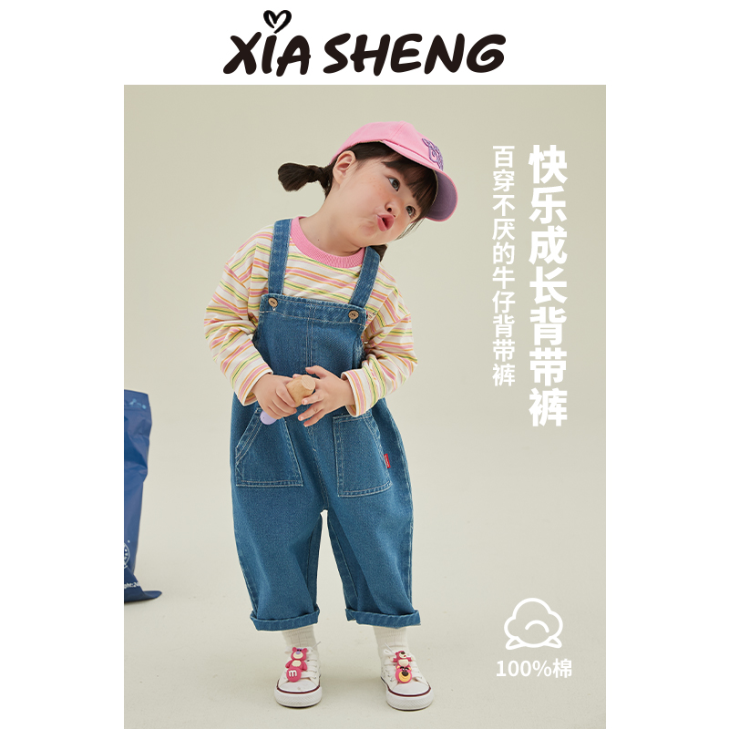 夏生百穿不厌背带裤男女童百搭休闲裤宝宝纯棉牛仔裤儿童春装新款