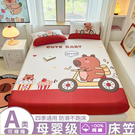 卡通卡皮巴拉纯棉床笠全棉床罩三件套儿童被套枕套防滑床垫保护套